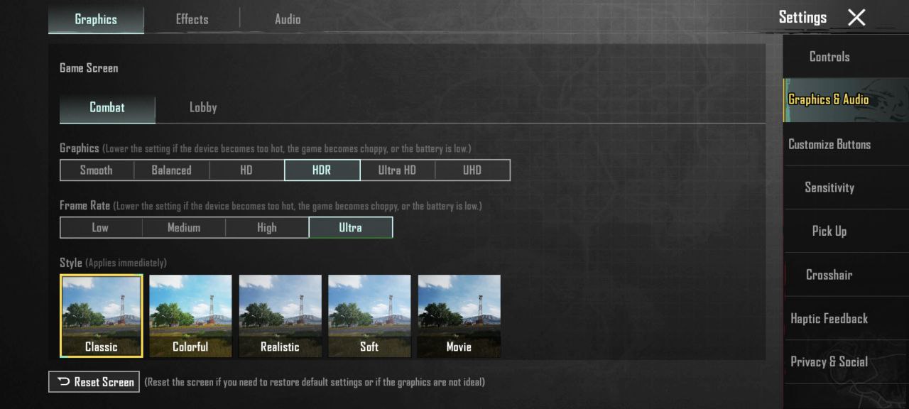 ส่วน PUBG Mobile เล่นแล้วเครื่องรองรับปรับกราฟิกได้ตามภาพ พอเล่นแล้วได้เฟรมเรทอยู่ที่ 60 FPS นิ่ง ๆ ลื่น ๆ เช่นกัน เล่นได้ไม่มีปัญหาใด ๆ