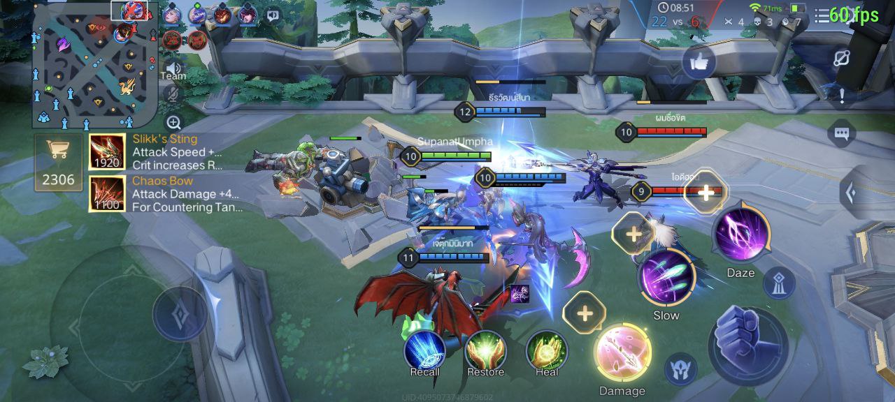 เราจึงต้องจับเอา HONOR 70 มาเล่นเกมกันดูว่ามีประสิทธิภาพยังไง เริ่มจากเกมอย่าง ROV ปรับสุดทุกอยางได้เฟรมเรตอยู่ที่ 60 FPS นิ่ง ๆ เล่นยาวไปก็มีร้อนบ้าง แต่ไม่เคยมีกระตุก จับเลื่อนจอสมูทใช้ได้ดี