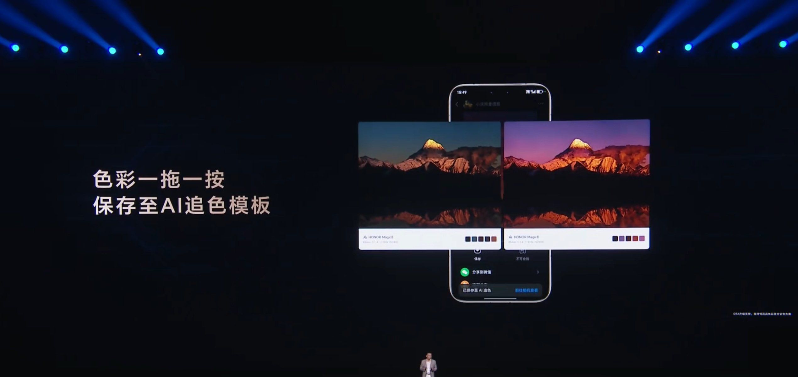 สุดท้ายสำหรับสเปคกล้องหลังของ HONOR Magic8 ก็คือ กล้องซูมเทเลโฟโต้ 64MP ออปติคัลซูม 3 เท่า และซูมดิจิทัลระยะไกลสุด 100 เท่า ส่วนกล้องหน้ามีความละเอียด 50MP รูรับแสง f/2.0 โดยมาพร้อมกับฟีเจอร์ใหม่อย่าง AI Color Tracking Function ที่ใช้เพื่อวิเคราะห์รูปแบบของโทนภาพ หรือสีของรูปถ่ายมาสร้างเป็นฟิลเตอร์ให้เลือกใช้งาน