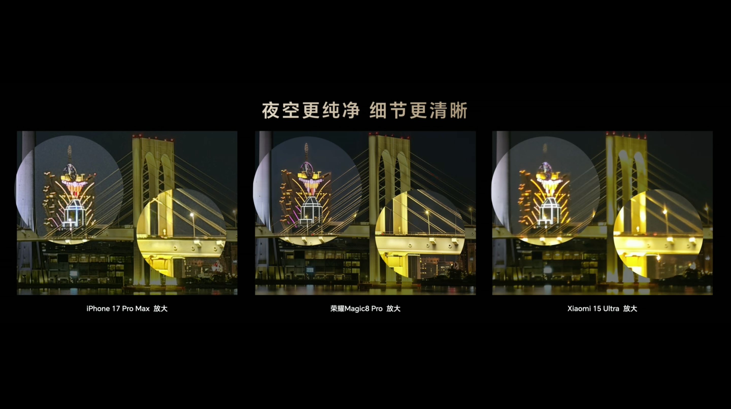 เซนเซอร์กล้องหลังทั้งสามตัวของ HONOR Magic8 Pro นำขบวนมาด้วย กล้องเทเลโฟโต้ความละเอียด 200MP เซนเซอร์ขนาด 1/1.4 นิ้ว รูรับแสง f/2.6 ออปติคัลซูมระยะ 3.7 เท่า และดิจิทัลซูมไกลสุด 100 เท่า ซึ่งมาพร้อมฟีเจอร์ใหม่ของ AiMAGE NONOR Nox Engine อย่างโหมด Night Scene ที่ใช้ AI Cloud เข้ามาช่วยปรับจูนรูปภาพที่ถ่ายในสภาวะแสงน้อย ให้ยังคงมีรายละเอียดที่ครบถ้วน