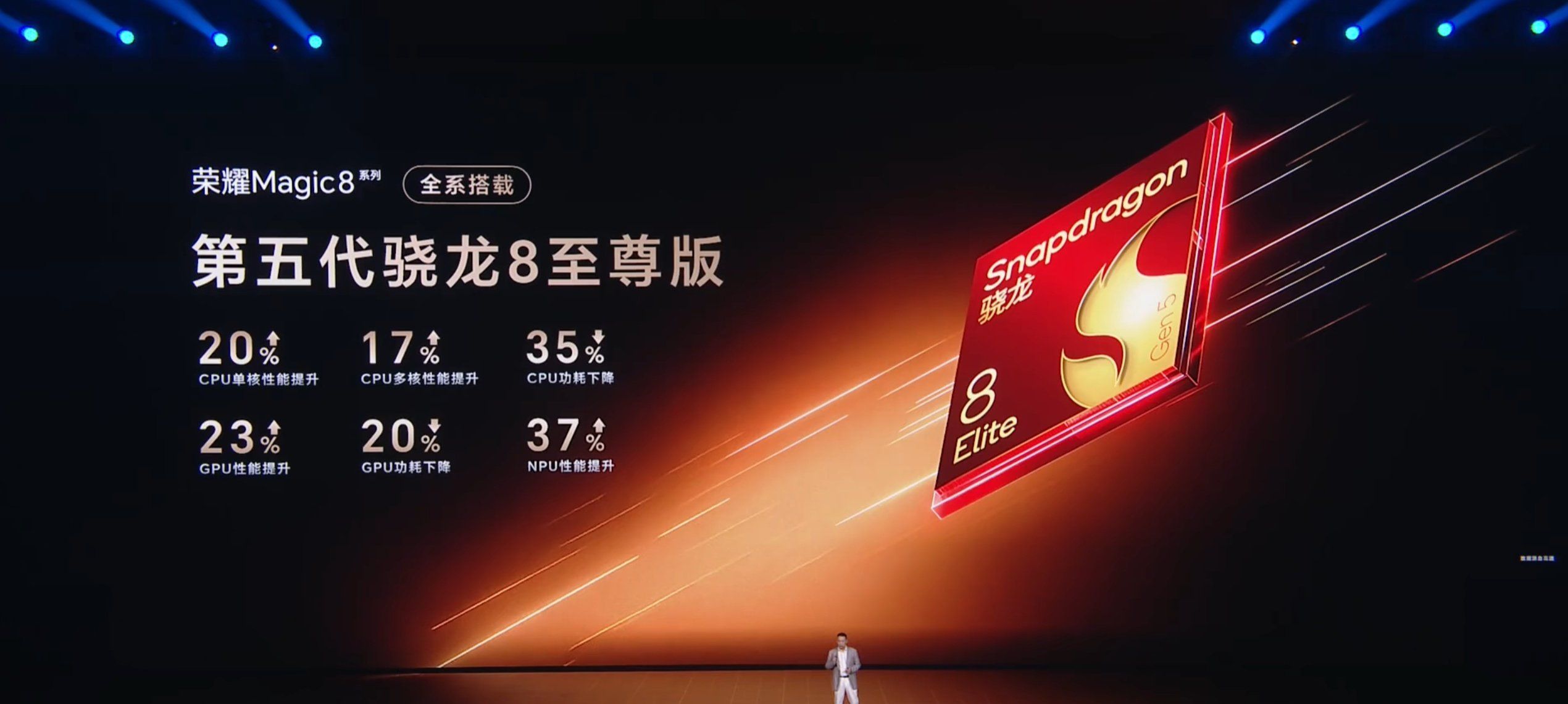 ชิปเซ็ตสำหรับการประมวลผลของ HONOR Magic8 เลือกใช้เป็นชิปจากทางค่าย Qualcomm อย่าง Snapdragon 8 Elite Gen 5 ที่ผลิตบนเทคโนโลยีขนาด 3 นาโนเมตร มีความเร็วประมวลผลสูงสุดถึง 4.6GHz จับคู่กับหน่วยความจำขนาดสูงสุด 16GB และพื้นที่จัดเก็บข้อมูลขนาดใหญ่สุดถึง 1TB ลำโพงคู่เสียงรอบทิศทาง และพอร์ตเชื่อมต่อ USB-C 2.0