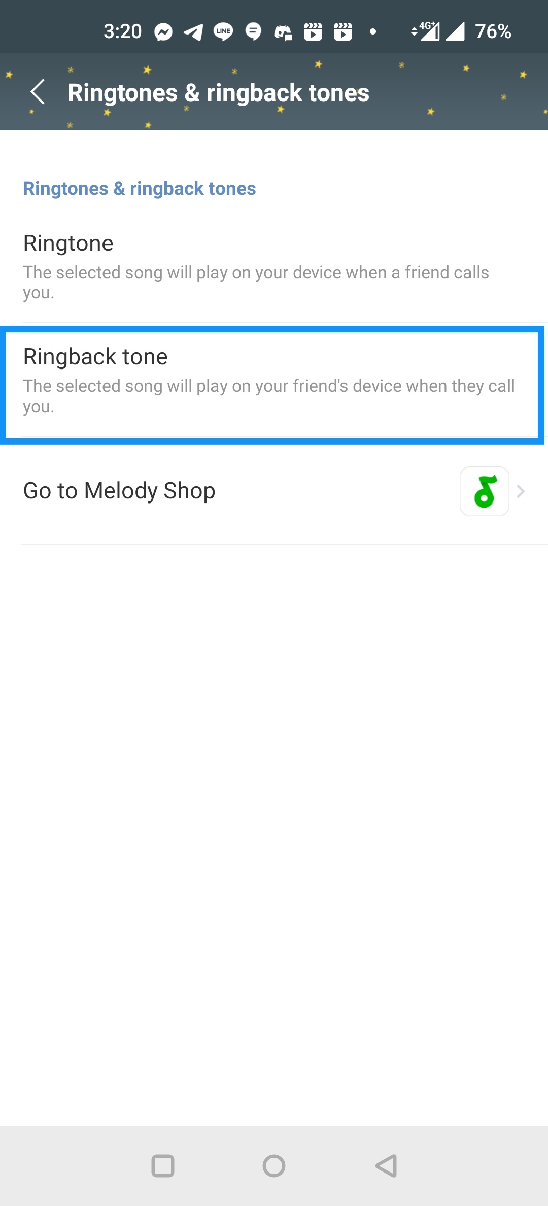 พอเข้ามาแล้ว ให้เข้าไปที่ Ringtones & ringback tones โดยเสียงรอสายเจ้าปัญหาที่ LINE แอบมาเปลี่ยนของเราแบบไม่อนุญาตนั้น จะอยู่ในหัวข้อ Ringback tones