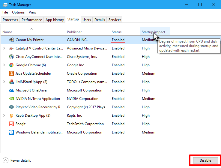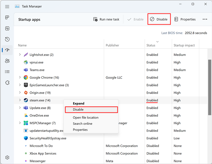 ㅤ - โปรแกรมไหนที่ชอบโผล่มาตอนเปิดเครื่อง ที่หัวข้อ Status ของมันจะมีสถานะเป็น Enabled หรือโดนเปิดใช้งานอยู่ วิธีปิดก็คือต้องไปเปลี่ยนสถานะมันให้กลายเป็น Disabled โดยของ Windows 11 ให้คลิกเลือกชื่อโปรแกรมที่ต้องการ จากนั้นกดที่ปุ่ม Disable ด้านบนขวา ส่วนของ Windows 10 ก็เลือกเหมือนกันแล้วกดปุ่ม Disable ด้านล่างขวาสุด (หรือทั้งคู่ใช้วิธีคลิกขวาที่ชื่อโปรแกรมแล้วเลือก Disable เลยก็ได้)