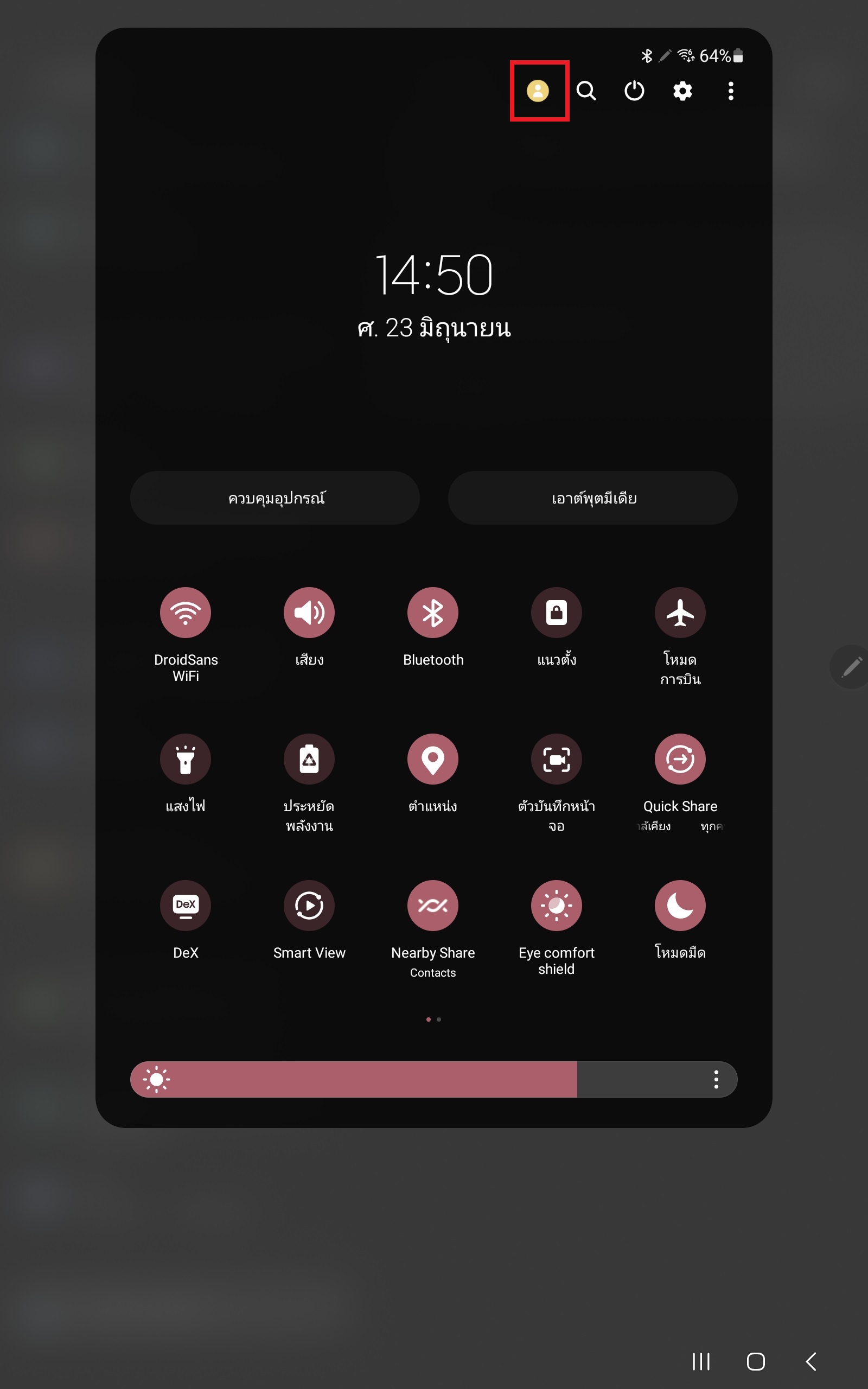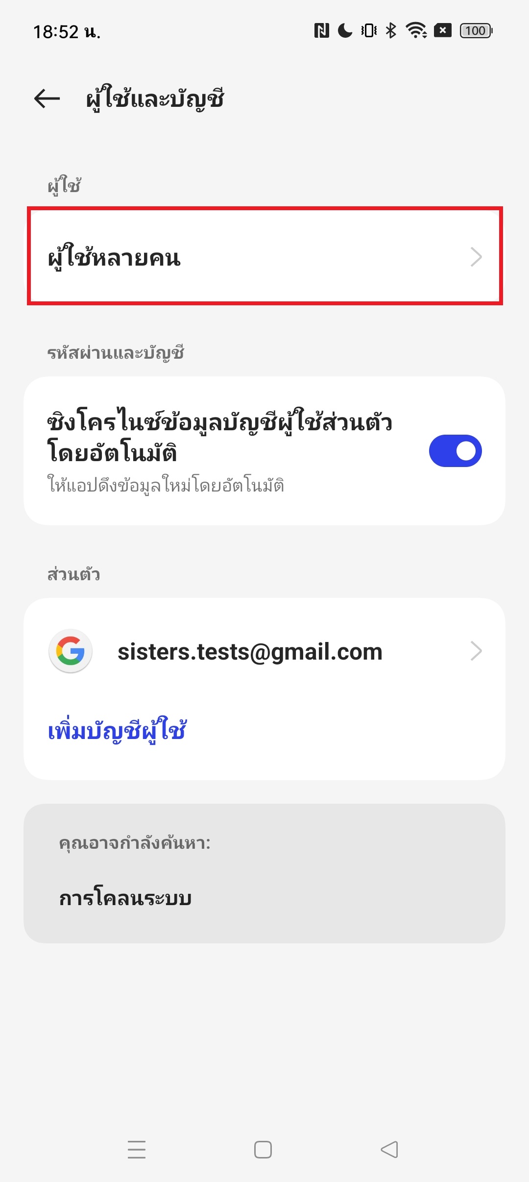 ต้องลากแถบบนลงมา 2 ทีจะเจอปุ่มสลับบัญชี