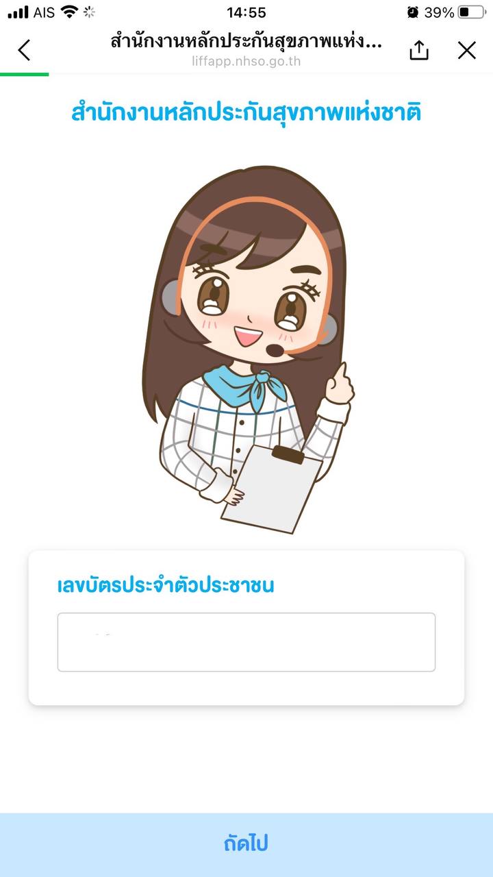 - เพิ่มเพื่อนในไลน์ผ่าน ID ID : @nhso