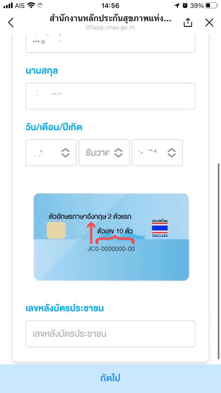 - กรอกเลขหมายบัตรประชาชน ด้านหน้าและหลัง