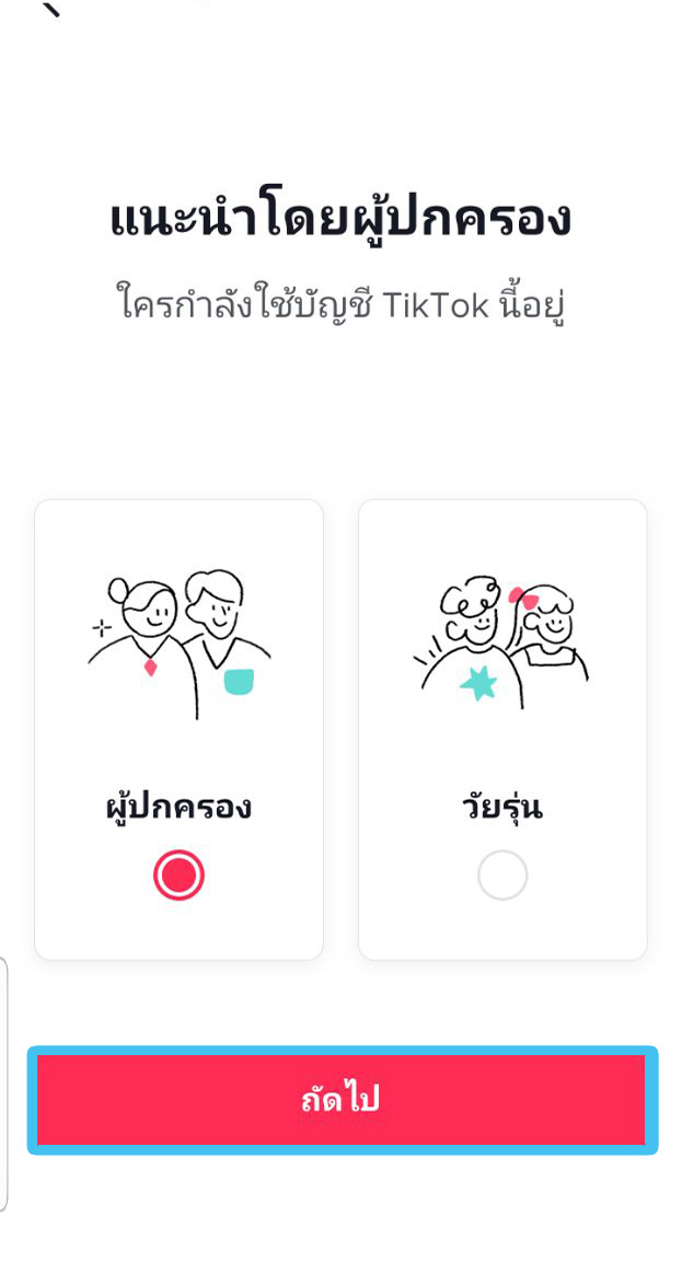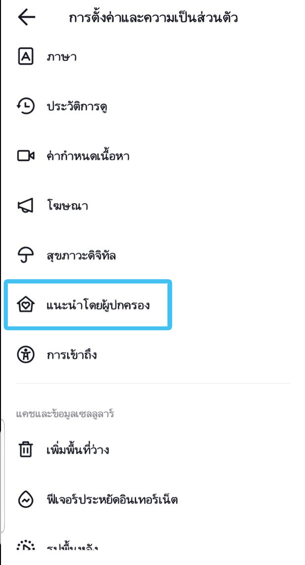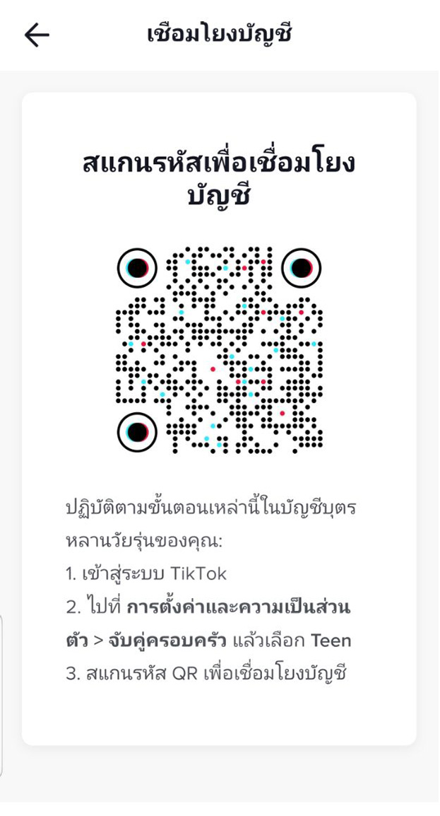 - ในการกรองเนื้อหาไปที่แอค TikTok > เลือกปุ่มเมนูมาที่หน้าบัญชีของเรา> การตั้งค่าและความเป็นส่วนตัว > เลื่อนลงไปที่ แนะนำโดยผู้ปกครอง > เลือกดำเนินการต่อ > กดผู้ปกรอง > จะมี QR คิวอาร์โค้ด ให้เรานำมือถือไปแสกนเพื่อทำการเชื่อมโยงกับแอคเคาน์บุตรหลาน