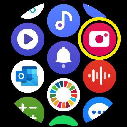 ถ้ายังหาไม่เจอให้มองหาไอคอนกลมสีแดงที่มีไอคอนกล้องสีขาวอยู่ตามภาพด้านล่างเลย แต่ถ้าหาไม่เจออย่าเพิ่งตกใจ เพราะทุกคนยังไม่ได้เชื่อมต่อนาฬิกา กับสมาร์ทโฟน Samsung นั่นเอง