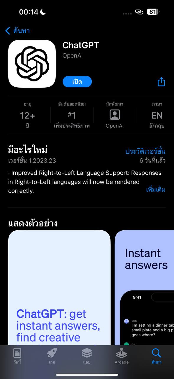 ขั้นตอนที่ 2 เมื่อดาวน์โหลดเสร็จให้เปิดแอป ChatGPT