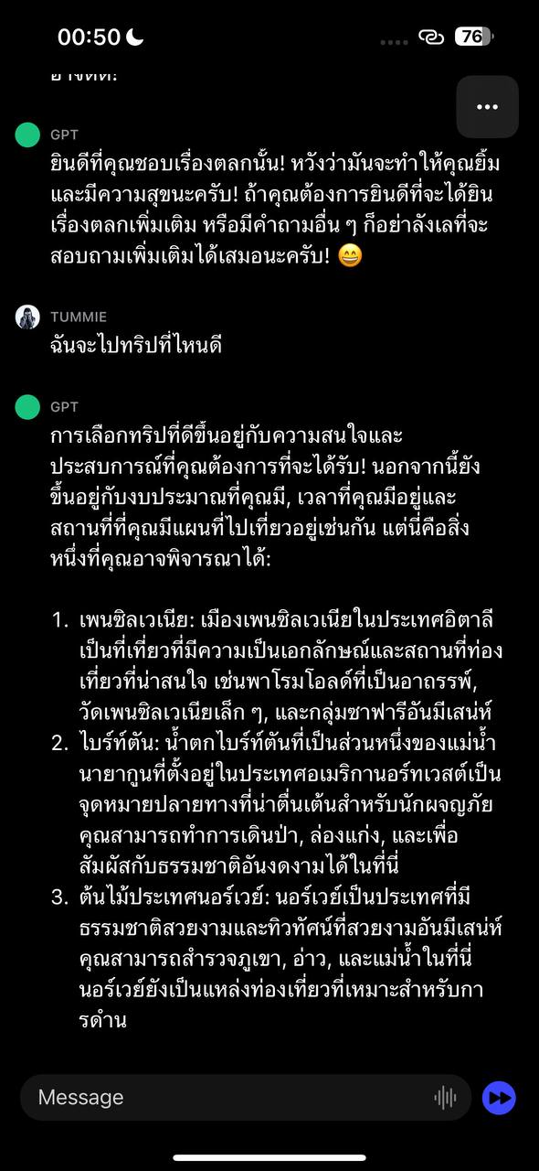 อีกทั้งยังดูเพิ่มเติมได้ว่าตัวแอปทำอะไรได้บ้าง หลังจากนั้นให้เราพิมพ์ถามคำถาม ChatGPT ได้ทันที สำหรับทุกเรื่องที่สงสัยหรืออยากได้ไอเดียใหม่ ๆ