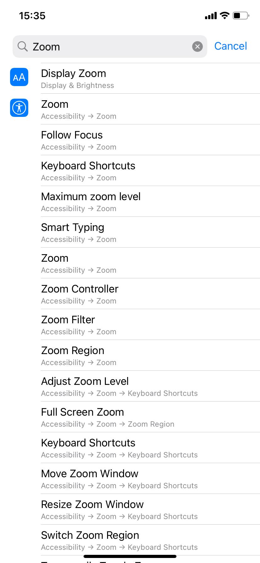 วิธีเปิดโหมดขยายจอ (ของ Apple เรียกว่า Zoom) สำหรับ iPhone และ iPad ก็คล้ายกันกับของ Android โดยให้เข้าไปที่เมนู Settings > Accessibility (การช่วยการเข้าถึง) > Zoom จากนั้นก็กดเปิดฟีเจอร์นี้ซะ…หรือง่าย ๆ ก็แค่พิมพ์ค้นหาว่า Zoom เอาก็ได้