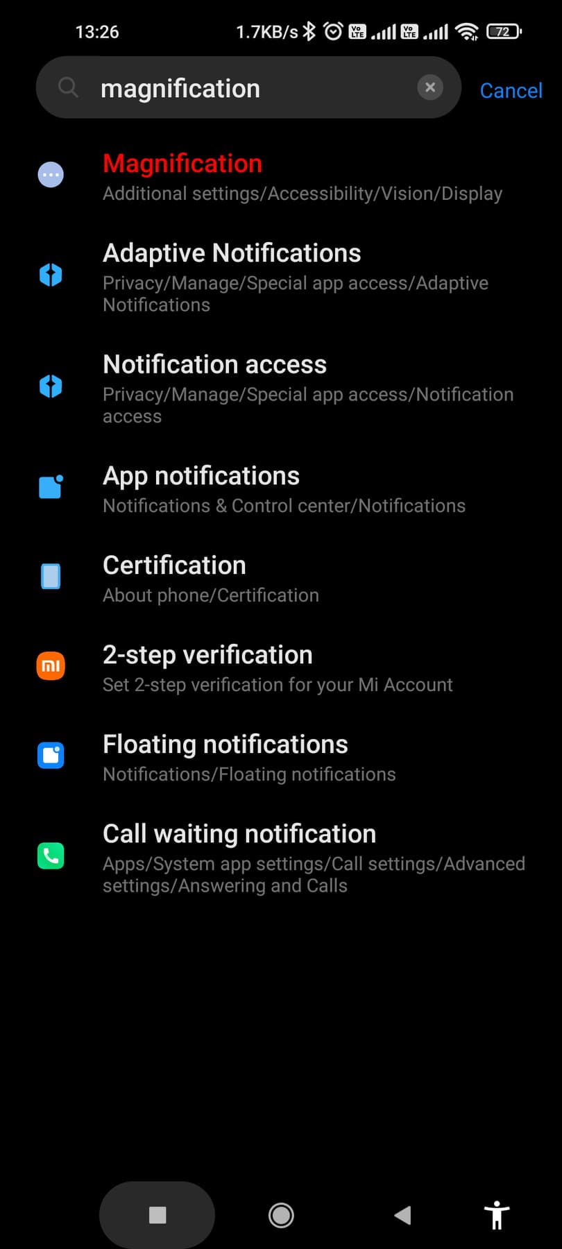 สำหรับวิธีเปิดโหมดขยายหน้าจอนี้ ในมือถือแต่ละแบรนด์จะมีวิธีเข้าที่แตกต่างกันออกไป (จนบางทีหากันวุ่นเลยว่าไปแอบอยู่ตรงไหน) วิธีที่ง่ายที่สุดเลยก็คือเข้าไปที่เมนู Settings ก่อน จากนั้นพิมพ์ในช่องค้นหาว่า Magnification (การขยาย) > พอเข้ามาในหน้านี้แล้วก็กดเปิดใช้งาน Magnification shortcut เพื่อที่จะเรียกใช้โหมดนี้ง่าย ๆ ในภายหลัง