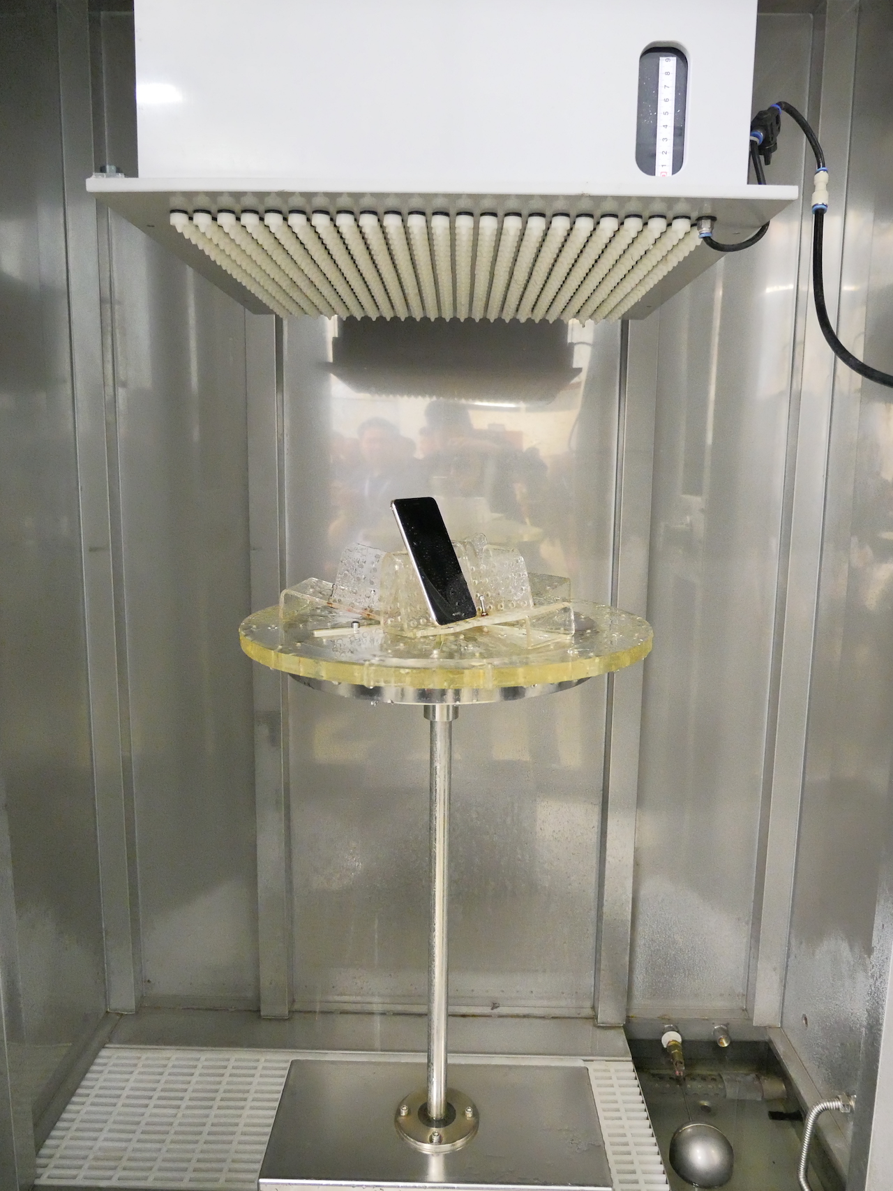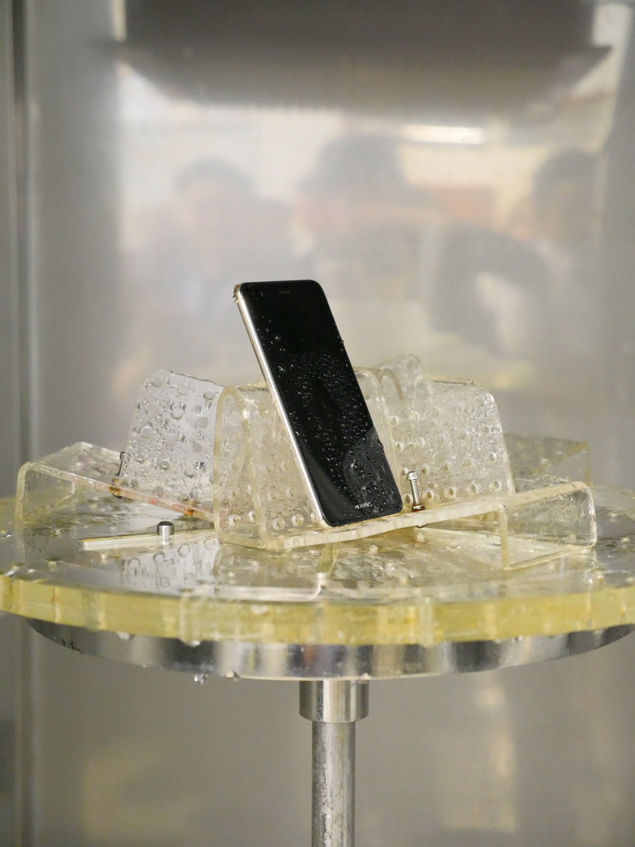 มาถึงห้องที่สอง ห้องทดสอบความทนทานของสมาร์ทโฟน หรือจะเรียกว่าเป็นห้องทรมานก็ไม่ผิดนัก เพราะแล็บนี้จะเต็มไปด้วยอุปกรณ์ในการทดสอบลองทำร้ายเจ้าสมาร์ทโฟนรุ่นต่างๆว่าจะสามารถผ่านมาตรฐานที่ทาง Huawei ตั้งเอาไว้ได้หรือไม่ ซึ่งแล็บนี้จะมีการทดสอบที่ประกอบไปด้วยสามส่วน ได้แก่