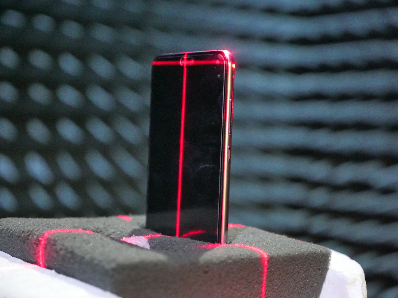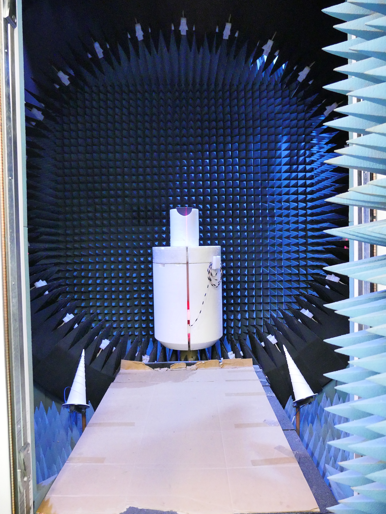 ใครที่เห็นห้องนี้เป็นครั้งแรก เชื่อว่าน่าจะคิดเหมือนกันว่าทำไมมันดูอวกาศและเอเลี่ยนขนาดนี้ ด้วยความที่ผนังมีลักษณะเป็นวัตถุแหลมๆแทงออกมารอบข้าง ซึ่งตรงนี้ทางทีมวิศวกรได้อธิบายว่าเป็นเพราะห้องนี้โดนออกแบบมาเพื่อทำการทดสอบเรื่องคลื่นสัญญาน จึงต้องทำการตัดคลื่นรบกวนอื่นๆออกทั้งหมด แบบที่เราเห็นเป็นแหลมๆนั้นวัสดุเค้าใช้เป็นโฟมนะครับ ทำให้ยื่นออกมาเพื่อซับคลื่นทั้งหลายทิ้งไป ไม่ให้มีการสะท้อนของคลื่น ความยาวความสั้นของแท่งนี้ก็ขึ้นกับความถี่ที่ต้องการจะซับ โดยคลื่นสัญญาณที่จะทำการทดสอบในห้องนี้ก็จะรวมถึงสัญญาณโทรศัพท์, สัญญาณ GPS, และสัญญาน WiFi ทั้งหลายเลยครับ โดยห้องที่ใช้ในการทดสอบทั้งหมดจะมีรวม 3 ห้องคือ