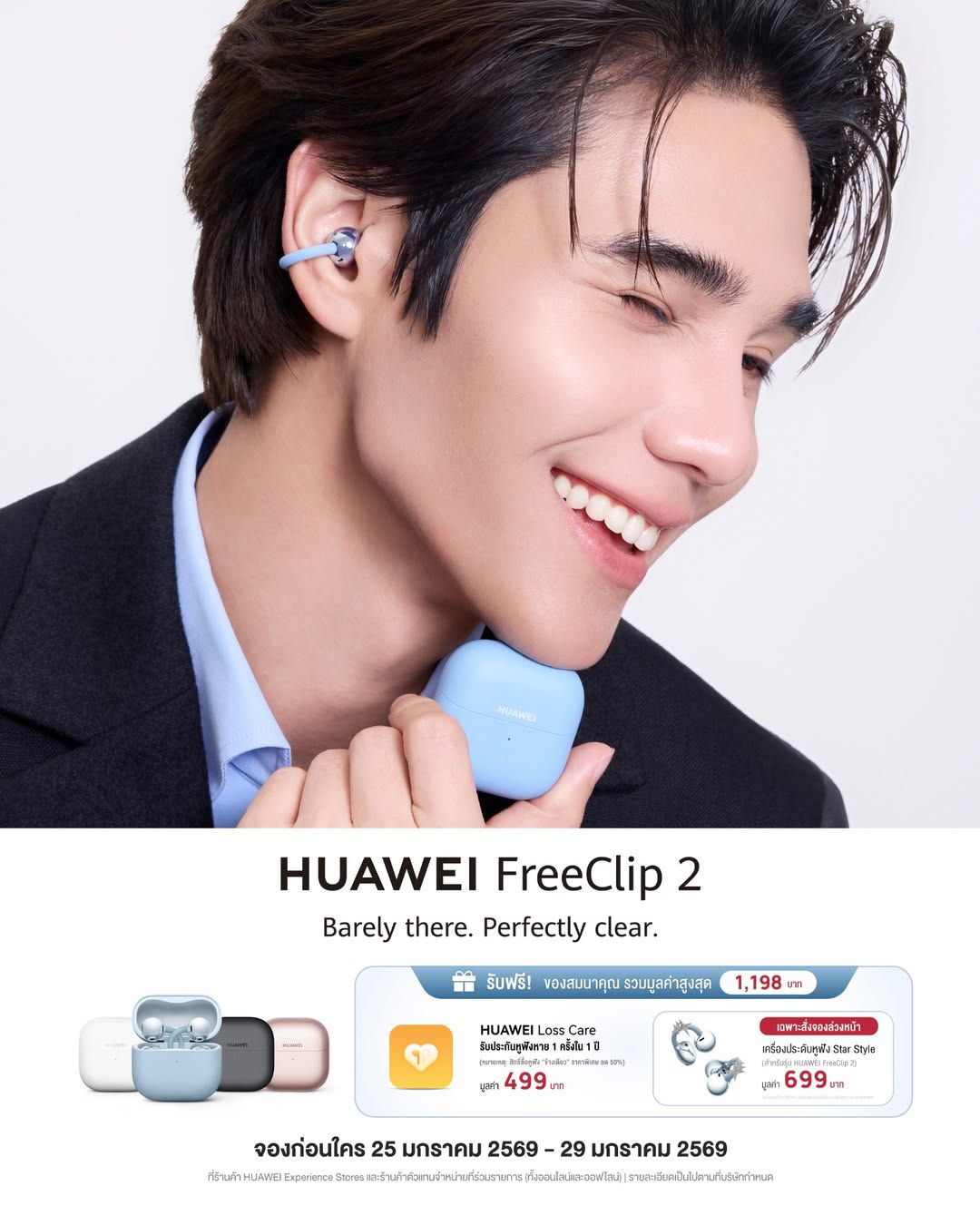 ราคาวางจำหน่ายของ HUAWEI FreeClip 2 จะเปิดให้ได้รู้กันอย่างเป็นทางการในวันที่ 25 มกราคม 2569 มีให้เลือกด้วยกัน 4 สี ได้แก่ สีฟ้า (Blue) สีชมพูโรสโกลด์ (Rose Gold) สีขาว (White) สีดำ (Black)