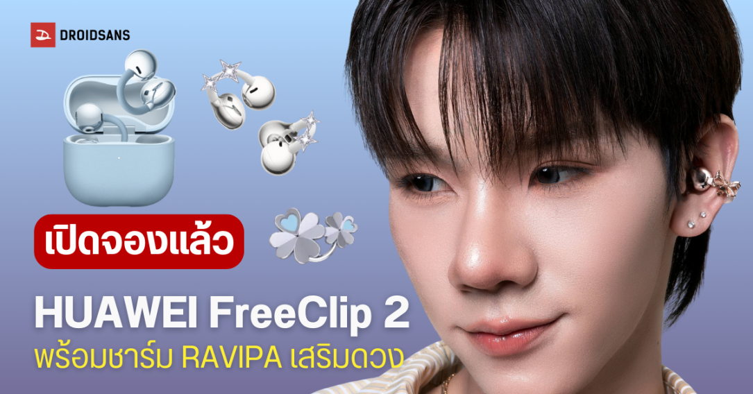 หัวเว่ย (HUAWEI) เปิดพรีออเดอร์ HUAWEI FreeClip 2 หูฟังไร้สายทรง Open-ear รุ่นล่าสุดในไทยแล้ว ที่รอบนี้นอกจากหูฟัง ยังได้ออกเครื่องประดับหูฟังคอลเลกชันพิเศษ HUAWEI FreeClip 2 X RAVIPA ที่เอาใจสายมู เสริมมงคล เป็นแฟชั่นไอเทม ที่ตอบโจทย์คนรุ่นใหม่ มาพร้อมโปรโมชันพรีออเดอร์สุดคุ้มตั้งแต่วันที่ 25 – 29 มกราคม 2569 นี้