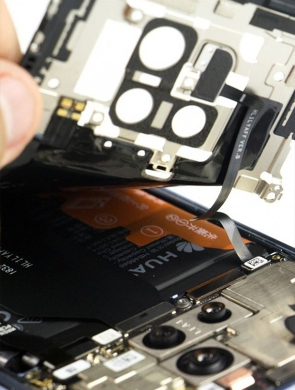 Huawei Mate 20 Pro มีดีไซน์เป็นกระจกประกบกันเหมือนแซนวิชที่มากับตัวกันน้ำและกันฝุ่น ในการจะแกะแต่ละชิ้นส่วนออกมา นั้นต้องใช้การไขสกรูออก, งัด และเอากาวออกในหลายขั้นตอน ซึ่งความลำบากในการแกะเครื่องคือกาวและซีลกันน้ำที่มีอยู่หลายจุด