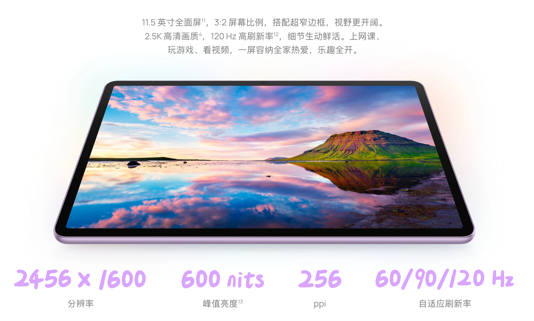 หน้าจอ IPS LCD ขนาด 11.5 นิ้ว (อัตราส่วนแบบ 3:2) ความละเอียดหน้าจอ 2,456 x 1,600 พิกเซล อัตรารีเฟรชสูงสุด 120Hz และความสว่างหน้าจอ 600 นิต