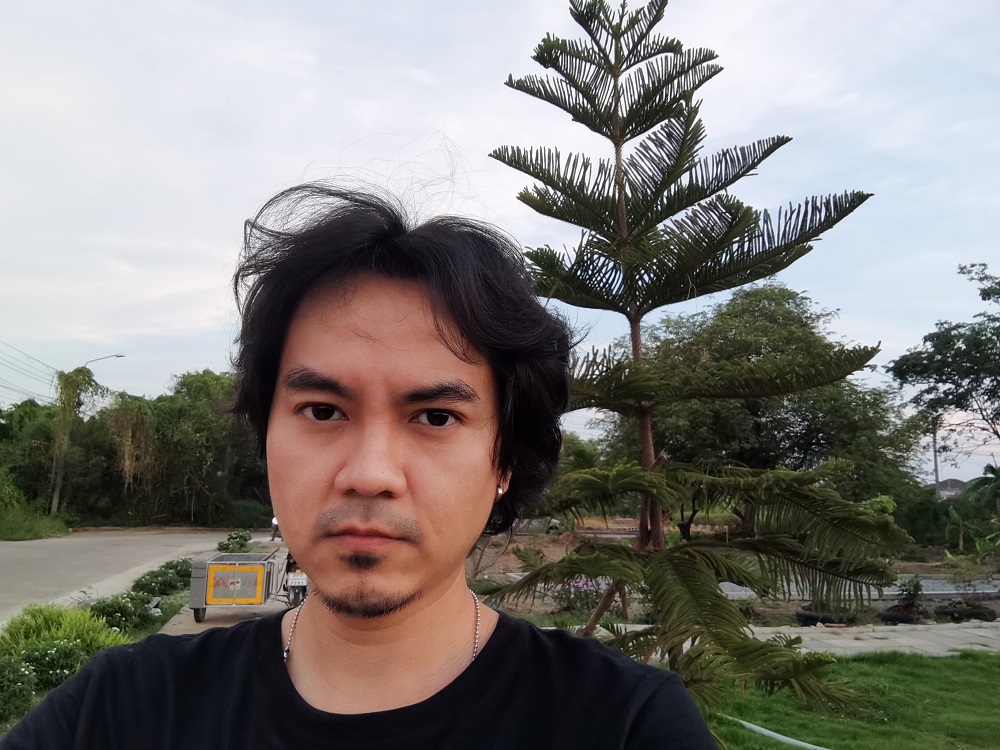 กล้องเซลฟี่ความละเอียด 8MP ก็พอใช้งาน Video Call ได้แบบชัดๆ แต่ถ้าจะเอามาถ่ายเซลฟี่เล่นด้วยการถือเครื่องแนวตั้ง ส่วนตัวคิดว่าตำแหน่งมันยังแปลกๆ เพราะถ้าพลิกเครื่องเป็นแนวตั้งปุ๊บ กล้องก็จะไปอยู่ที่มุมขวาบน ถ้าตอนถ่ายเซลฟี่แล้วมองที่หน้าจอ หน้าของเราจะดูเหมือนมองอะไรข้างล่างอยู่ ก็เลยต้องถ่ายแบบแนวนอนเอา ซึ่งก็จะทำให้จับเครื่องไม่ถนัด พาลจะหลุดมืออีก