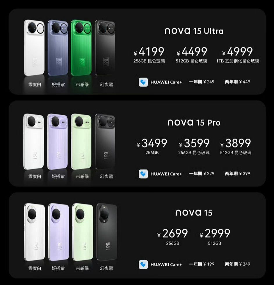 | HUAWEI nova 15 | HUAWEI nova 15 Pro | HUAWEI nova 15 Ultra | ||