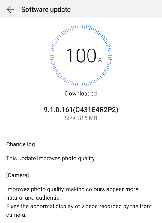 EMUI 9.1.0.161 นั้นจะมี change log บอกชัดเจนว่ามีการแก้ไขสีกล้องและการถ่ายวิดีโอของกล้องเซลฟี่ ส่วน EMUI 9.1.0.168 นั้นกลับไม่มีรายละเอียดการอัพเดทกล้องเลย บอกแค่ว่ามีการอัพ Security Patch เดือนมิถุนายนเท่านั้น