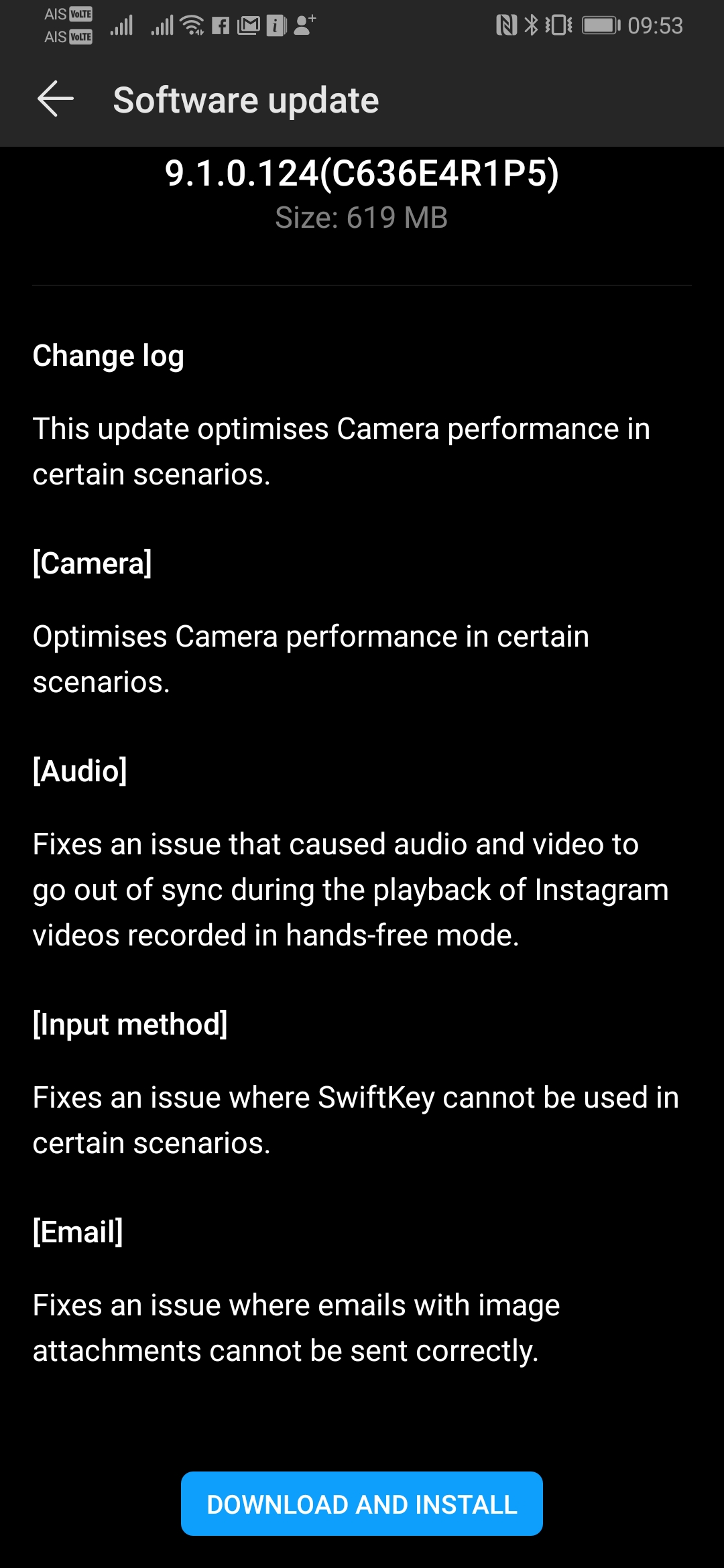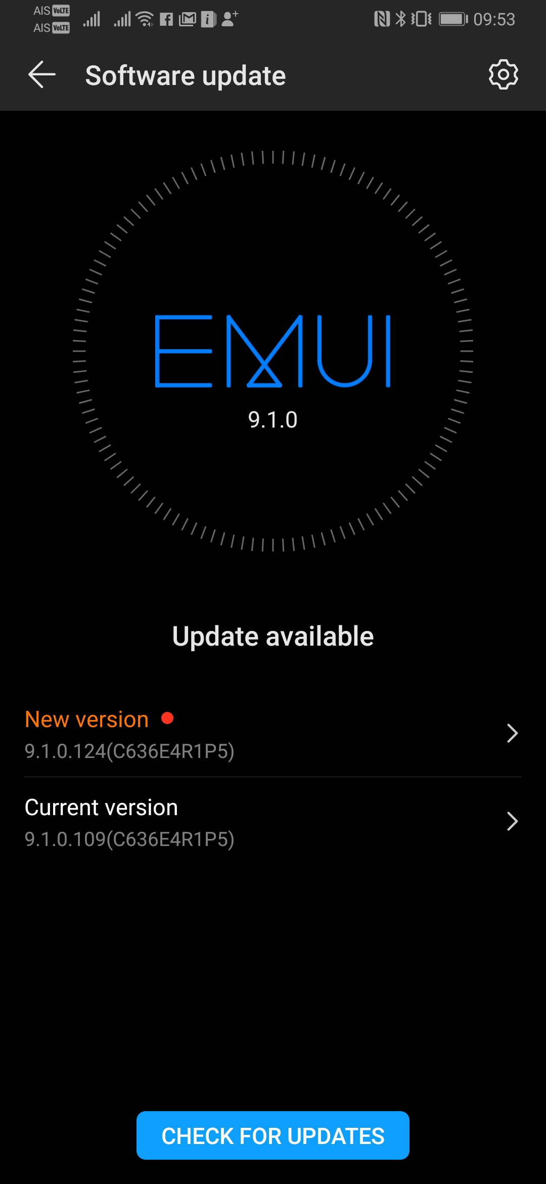 หลังจากเปิดจองไปได้ไม่นาน Huawei 30 Pro ก็ได้มีการอัพเดตซอฟต์แวร์เป็นครั้งแรกออกมาจนได้ โดยเน้นไปที่ประสิทธิภาพของตัวกล้องถ่ายภาพ การถ่ายคลิปวิดีโอแล้วเสียงไม่ตรงกับปากบน Instagram และการสแกนลายนิ้วมือ โดยเป็นการอัพเดทจาก EMUI 9.1.0.109 เป็น 9.1.0.124 มีขนาดประมาณ 619MB