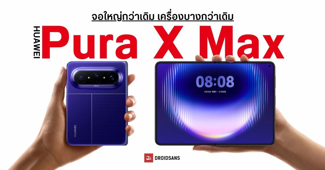HUAWEI Pura X Max เปิดตัวอย่างเป็นทางการแล้ว ‘มือถือจอพับทรงกว้าง’ ที่หน้าจอใหญ่กว่าเดิม และเครื่องบางน้อยลงกว่าเดิมจากรุ่นที่แล้วอย่าง Pura X โดดเด่นด้วยหน้าจอขนาด 7.7 นิ้ว ชิป Kirin 9030 Pro แรงขึ้น เร็วขึ้น กล้องถ่ายภาพระบบ XMAGE เริ่มต้นราว 52,000 บาท