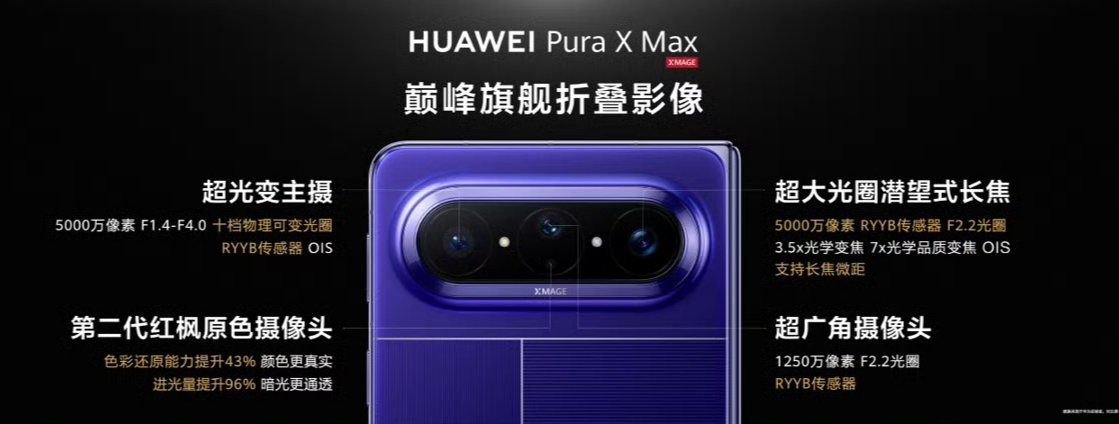 HUAWEI Pura X Max มาพร้อมกับเซนเซอร์มัลติสเปคตรัม Red Maple รุ่นที่ 2 ช่วยให้สีสันในภาพถ่ายสดใสดูเป็นธรรมชาติยิ่งกว่าเดิม 43% เพิ่มประสิทธิภาพการรับแสง 96% เพื่อการถ่ายภาพในสภาวะแสงน้อย