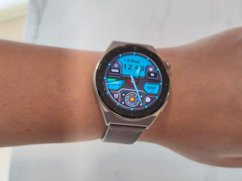 หน้าจอ AMOLED ของ HUAWEI Watch GT 3 Pro เป็นหน้าจอแบบสัมผัสขนาด 1.43 นิ้ว แสดงผลได้ชัดเจนแจ่มแจ๋ว และสู้แดดได้สบาย ๆ แม้จะเป็นตอนกลางเที่ยงแดดเปรี้ยง ๆ ก็ตาม โดยเราสามารถตั้งค่าให้หน้าจอติดขึ้นมาตอนที่ยกแขนขึ้นมา ให้หน้าจอติดเฉพาะตอนกดปุ่มเท่านั้น หรือจะตั้งให้เป็น Always on Display เพื่อโชว์เวลาตลอดก็ได้ ซึ่งถึงแม้ว่าหน้าจอแบบ Always on diaplay จะลดแสงสว่างลงไปกว่าปกติ และเปลี่ยนการแสดงผลบางส่วนให้เป็นสีดำ แต่ยังไงมันก็จะกินแบตเตอรี่มากกว่าการตั้งค่าปกติที่จอดับพักเป็นช่วง ๆ อยู่ดีนะครับ