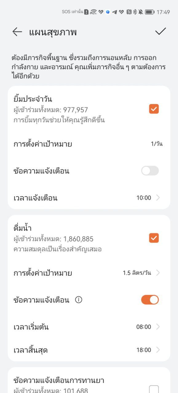 แอปตัวนี้เราค่อนข้างชอบเพราะปกติเป็นคนดื่มน้ำน้อยมากค่ะ แต่ทาง HUAWEI Healthy มีการให้เรากำหนดเป้าหมายของการดื่มน้ำได้ด้วยว่าควรลุกขึ้นยืนตอนไหน ,ดื่มน้ำตอนไหน, เตือนให้กินยา ,ตัวเตือนสำหรับวัดความดันโลหิต และอีกมากมาย เมื่อครบกำหนดจะแจ้งเตือนให้เราทำตาม มันดีอยู่นะช่วยปรับพฤติกรรมเราให้ติดเป็นนิสัยให้ดีขึ้นด้วย