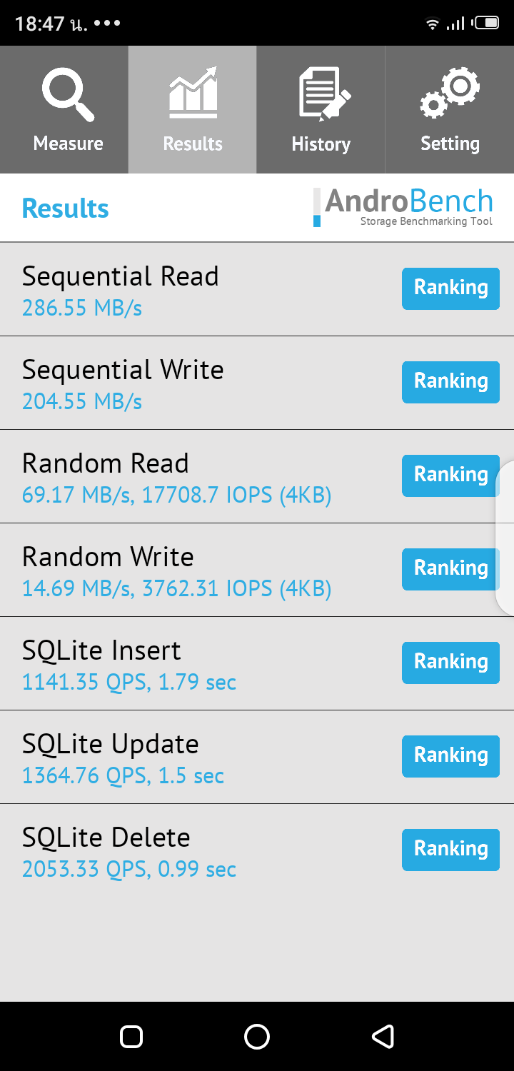 จากที่ทดสอบเปิดแอปหลักทั้งหมด 10 แอป สามารถสลัปเปลี่ยนแอปได้อย่างรวดเร็วดี ไม่มีติดขัดหรืออาการค้างใดๆ ส่วนการอ่าน-เขียนไฟล์ขนาดใหญ่ ได้ทำการทดสอบผ่านแอป AndroBench สามารถอ่านได้ 286.55 MB ต่อวินาที ส่วนการเขียน 204.55 MB ต่อวินาที หรือจะยังใช้เป็นหน่วยความจำแบบ eMMC ซึ่งจะยังไม่ได้เขียนอ่านได้เร็วปรู๊ดปร๊าดเหมือนรุ่นแพงๆ โหลดเข้าแอปหรือเปิดไฟล์ใหญ่ๆก็อาจจะยังใช้เวลาเยอะหน่อย