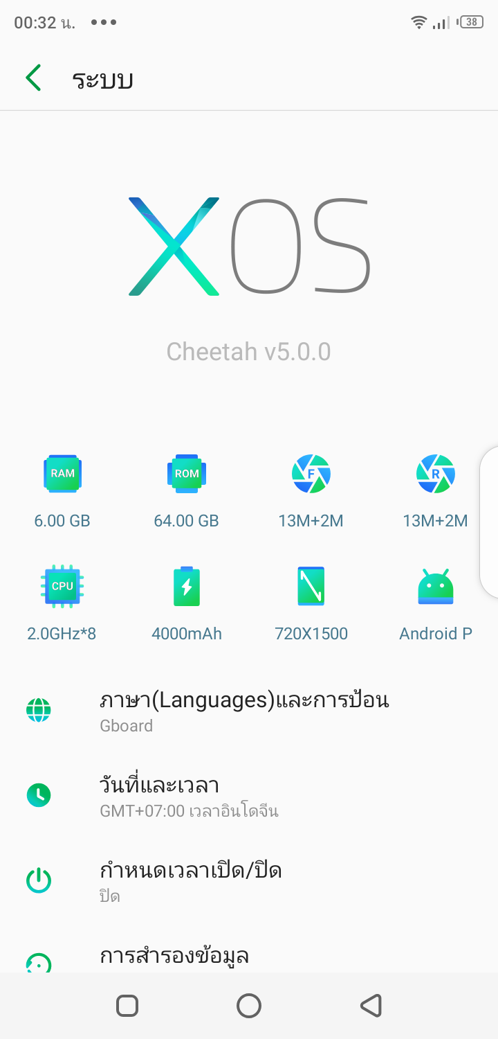 - ระบบปฏิบัติการ Android 9.0 Pie ครอบทับด้วย XOS 5.0