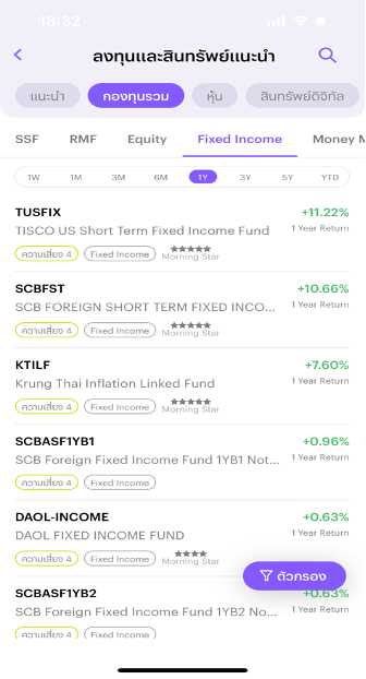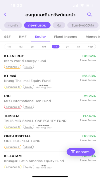 เลือกกองทุนตามสไตล์ โดยจะมีรายละเอียดที่จำเป็น เช่น ความเสี่ยง อัตราการเจริญเติบโต แสดงให้ดูง่ายๆ