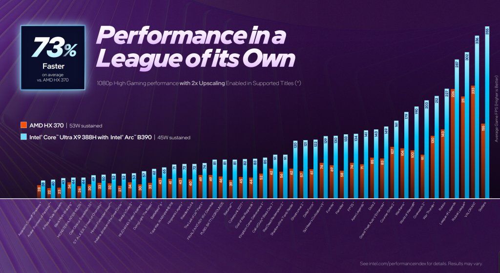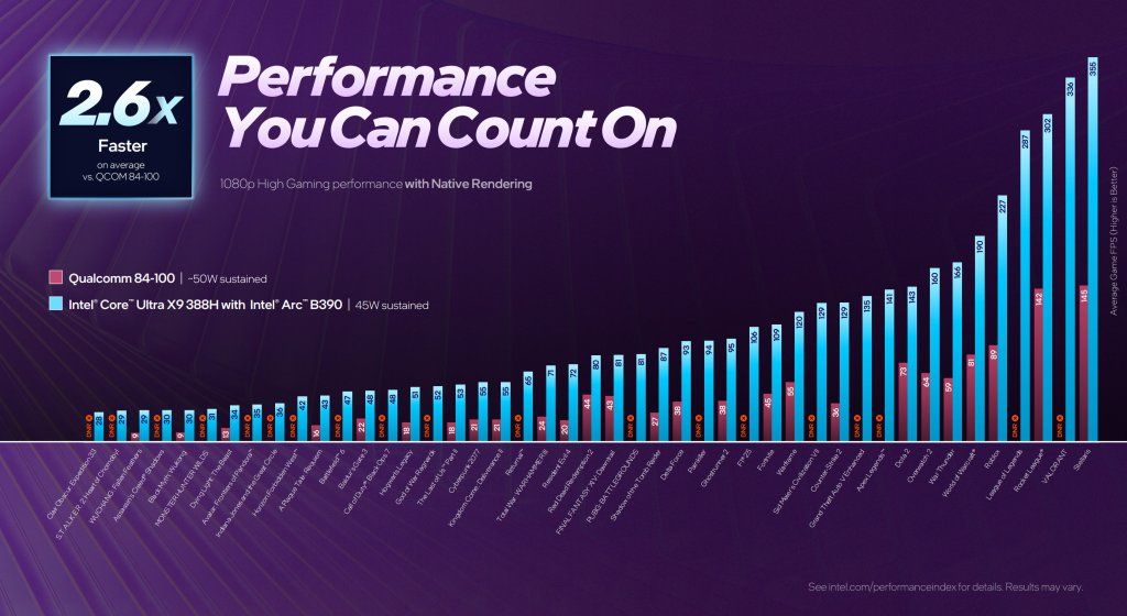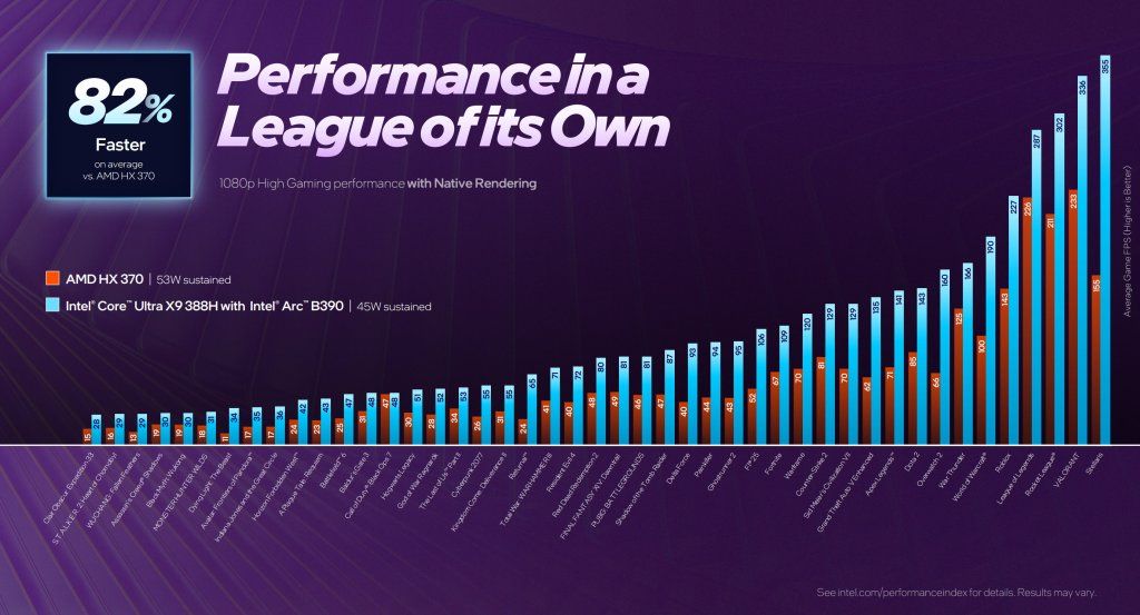 iGPU ที่ถูกจับตามองมากที่สุดในตระกูลนี้คือ Intel Arc B390 ซึ่งถูกวางตำแหน่งเป็นกราฟิกออนบอร์ดระดับเรือธงสำหรับโน้ตบุ๊ก โดยรุ่นท็อปสุดมาพร้อม 12 Xe-Cores เพิ่มขึ้นอย่างมีนัยสำคัญจาก Xe2 รุ่นก่อนหน้า Intel อ้างว่า Arc B390 ให้ประสิทธิภาพสูงกว่า Radeon 890M ของ AMD ราว 73–82% ในการทดสอบที่ความละเอียด 1080p และยังมีประสิทธิภาพต่อวัตต์ที่ดีกว่า เมื่อเทียบกับชิปคู่แข่งในกลุ่มที่ใช้พลังงานใกล้เคียงกันราว 45 วัตต์