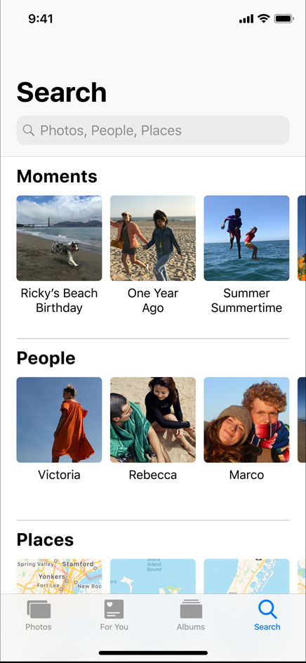ค้นหาภาพอะไรก็ง่าย พิมพ์แค่คีย์เวิร์ดลงไปแอปก็จะพยายามหาข้อมูลและภาพที่ตรงกับคีย์เวิร์ดนั้นๆใน Photos ได้อย่างสะดวก และถ้าเกิดว่าเราไปเที่ยวมีรูปถ่ายร่วมกันกับเพื่อนมา แอปจะจดจำหน้าเพื่อนได้พร้อมเลือกรูปของเพื่อนทั้งหมดนั้นมาให้เราพร้อมกดแชร์ไปได้อย่างสะดวก และที่เจ๋งกว่าคือเมื่อเพื่อนได้รับภาพไปแล้ว Photos ของเพื่อนก็จะรู้ว่าเราส่งมาให้ และเลือกภาพที่มีหน้าเราอยู่มาให้เราพร้อมส่งกลับได้ด้วย