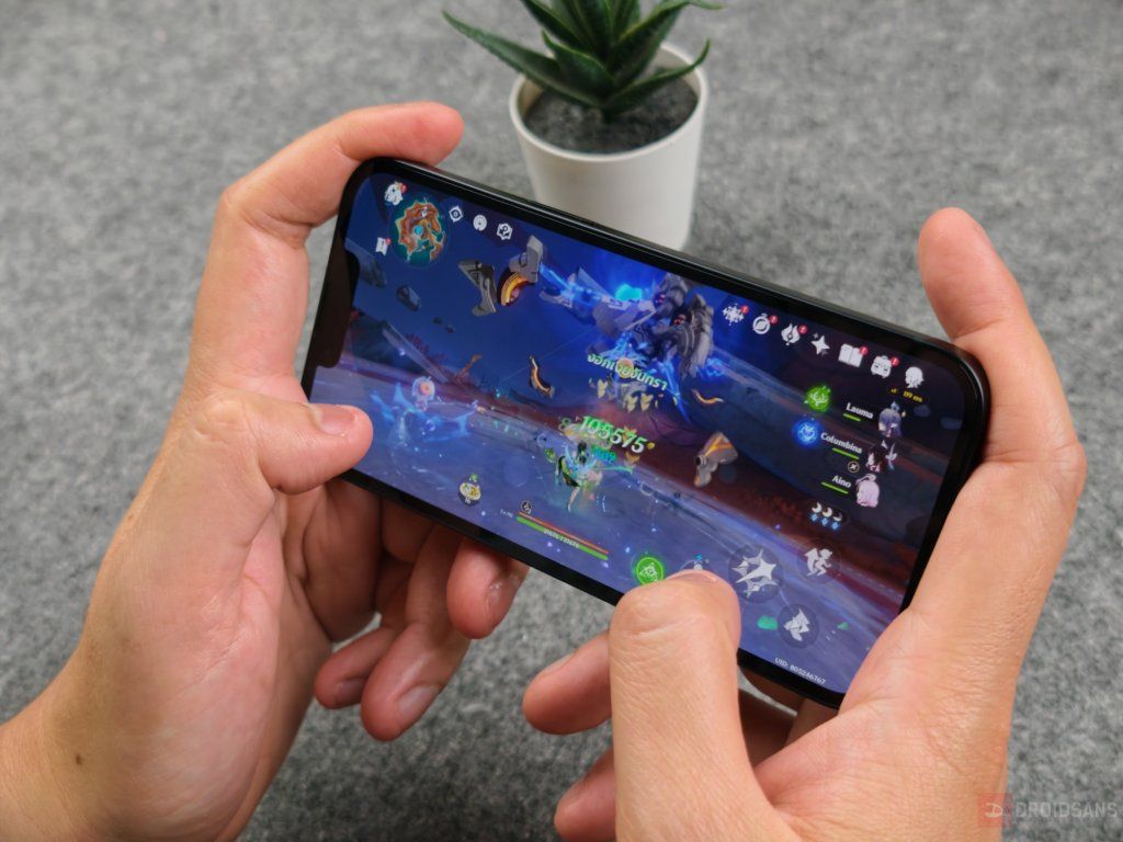 แต่ถ้าเป็นการใช้งานหนัก โดยเฉพาะการเล่นเกม ต้องบอกว่าแบตเตอรี่ลดลงค่อนข้างเร็ว เห็นผลชัดเจน อย่างการเล่น Genshin Impact ประมาณ 20 นาที แบตเตอรี่ลดลงไปถึงราว 10% ซึ่งถือว่าไหลเป็นน้ำ และไม่เหมาะกับการเล่นเกมยาว ๆ นอกบ้าน