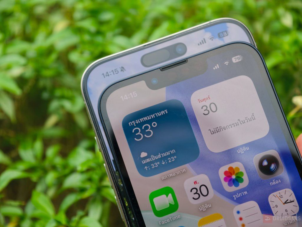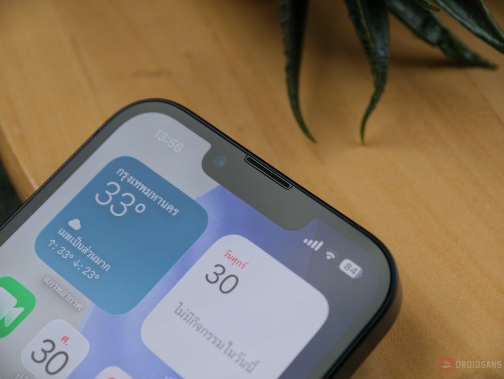 จุดที่คนซึ่งเคยใช้ iPhone รุ่นใหม่กว่านี้จะรู้สึกว่าต้องปรับตัวเล็กน้อย คือขอบหน้าจอที่หนากว่ารุ่นใหม่ ๆ แบบรู้สึกได้จริง รวมถึงรอยบาก Face ID ที่ยังไม่ใช่ Dynamic Island ไม่มี Action Button และไม่มีปุ่ม Camera Control ซึ่งส่วนตัวถือว่าไม่มีแล้วกลับรู้สึกดีด้วยซ้ำ ใช้ง่าย ไม่ต้องคิดอะไรเยอะ