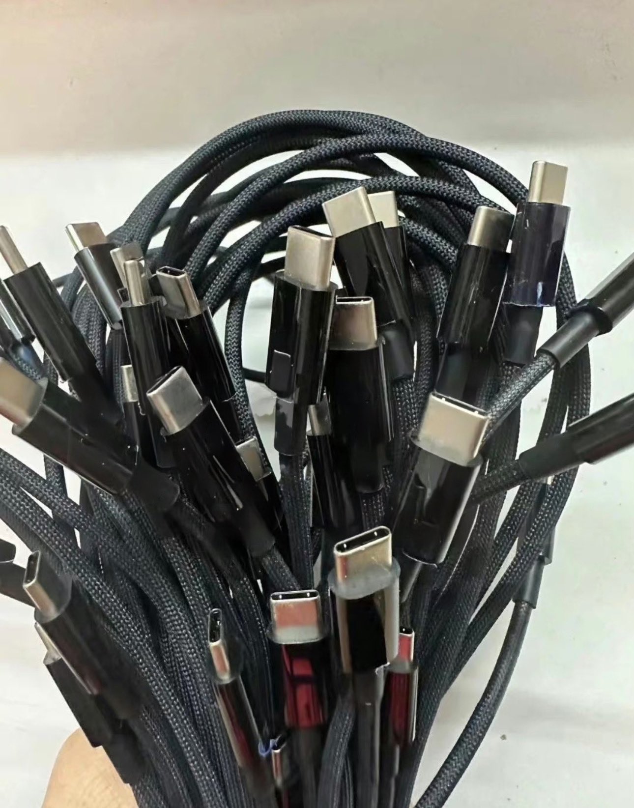 โดยภาพสายชาร์จ USB-C ที่หลุดออกมานั้น มาในดีไซน์สายแบบถักเสริมความคงทนจากแบบธรรมดา คล้าย ๆ กับสายถัก MagSafe 3 ที่แถมมากับ MacBook รุ่นใหม่ ตัวสายมีให้เลือกหลากสีสันทั้งสีแดงอ่อน ที่ดูใกล้เคียงกับสี Rose Gold, สีฟ้าขาว และสีดำ โดยคาดว่าจะเป็นสีที่เหมือนกับตัวเครื่องของ iPhone 15 Pro Series