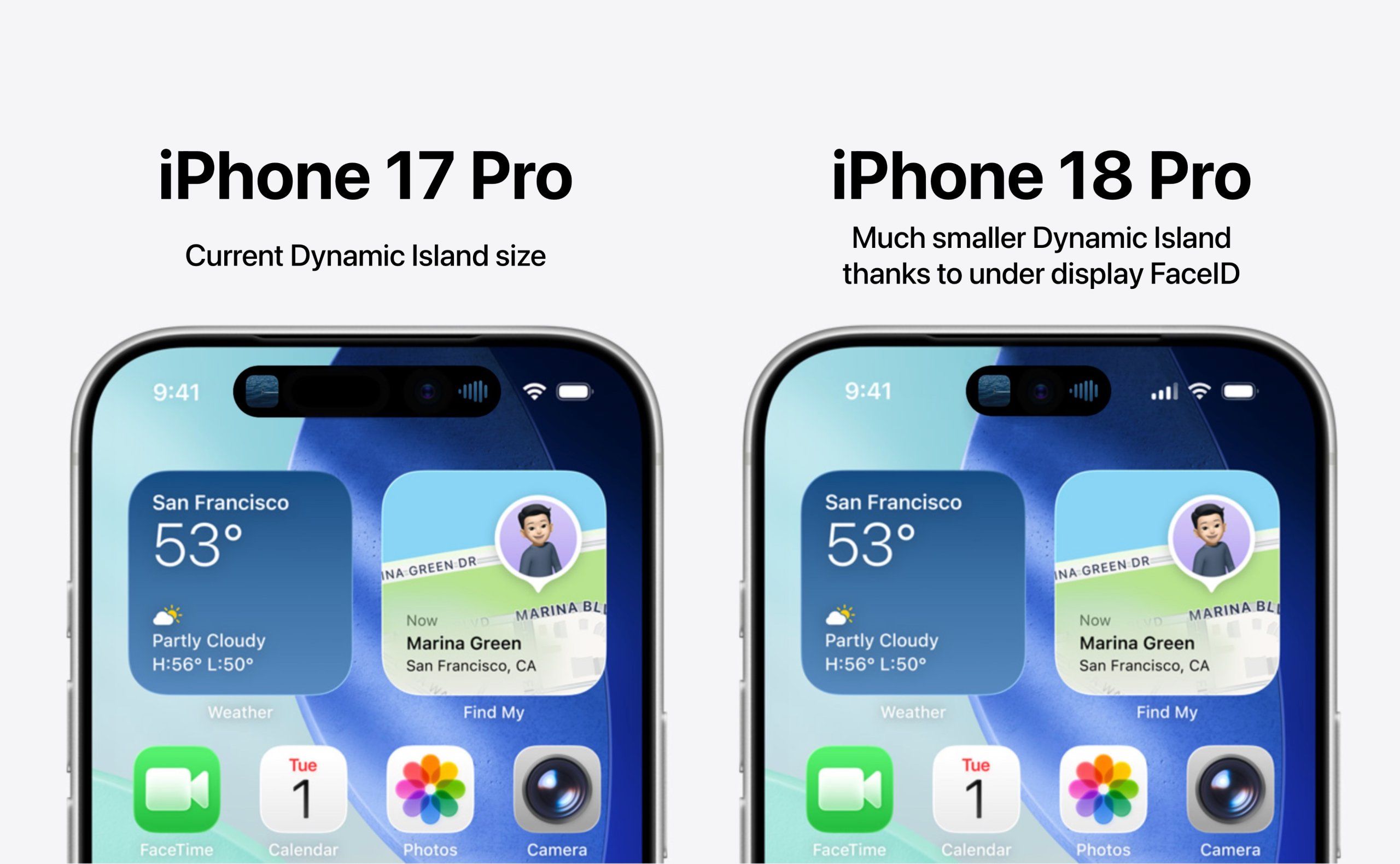 ข้อมูลล่าสุดจากทิปสเตอร์ฝั่งจีนบน Weibo อย่าง Samart Pikachu ระบุว่า Apple กำลังทดสอบเทคโนโลยีระบบสแกนหน้า 3D หรือเซนเซอร์ Face ID ไปไว้ใต้หน้าจอ (Under-display Face ID) เพื่อทำให้ขนาดของ Dynamic Island ลดน้อยลงกว่าเดิม และเพิ่มพื้นที่ของหน้าจอให้มากขึ้น
