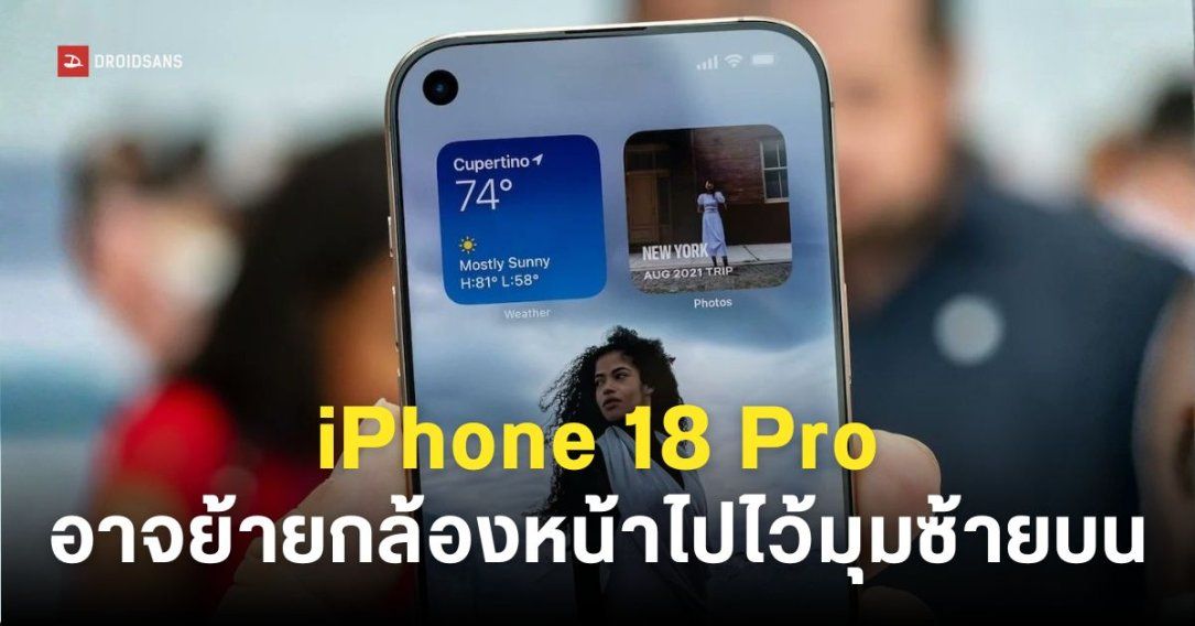 iPhone 18 Pro นอกจากความเป็นไปได้ที่จะเปลี่ยนไปใช้เซนเซอร์สแกนใบหน้า Face ID ใต้หน้าจอแล้ว ล่าสุดมีข้อมูลออกมาว่า Apple อาจตัดสินใจรื้อดีไซน์ Dynamic Island บน iPhone 18 Pro ออก แล้วหันไปใช้เป็นกล้องหน้าเจาะรูมุมซ้ายบนแทน !