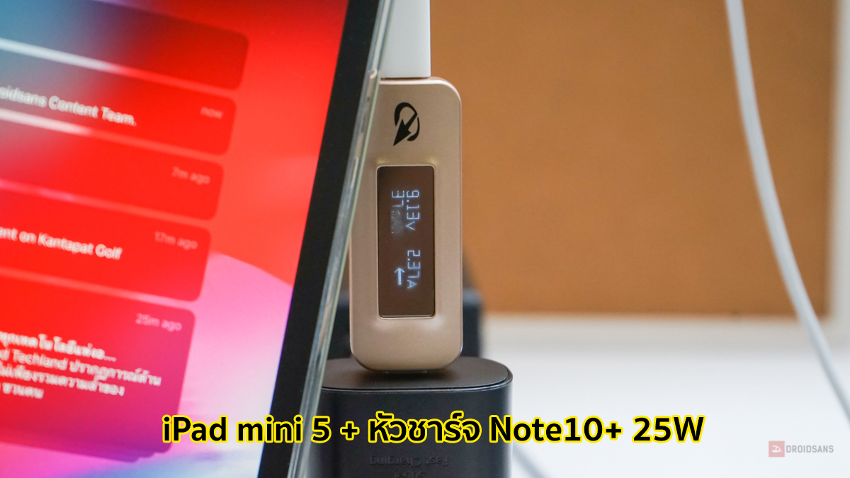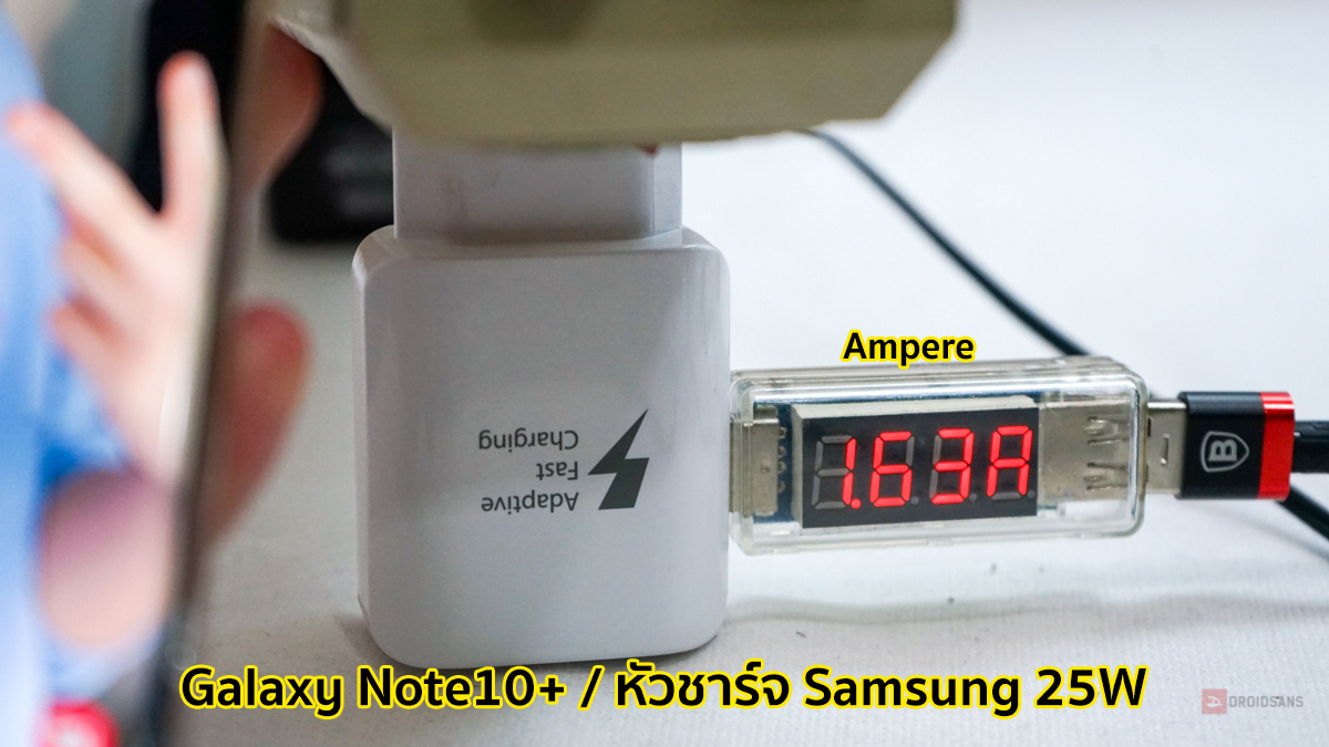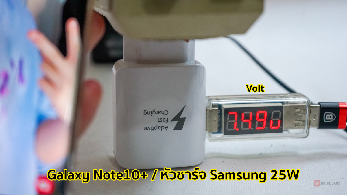 - Galaxy Note10+ (ในกล่องแถมหัวชาร์จ 25W) สเปครองรับได้สูงสุด 45W