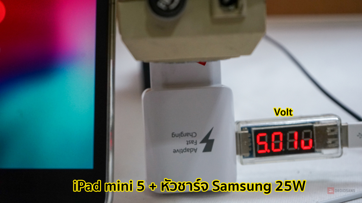 สำหรับผลการทดสอบ iPhone X และ iPad Gen 7th ทีมงานได้ทำการแยกออกมา เพื่อไม่ให้ข้อมูลในตารางมีมากเกินไปจนดูยาก ซึ่งเท่าผลลัพธ์ที่ได้จากการใช้ iPhone X และ iPad Gen 7th กับหัวชาร์จ Samsung 25W ใช้สายชาร์จของ iPhone 11 ผลลัพธ์ที่ได้คือ