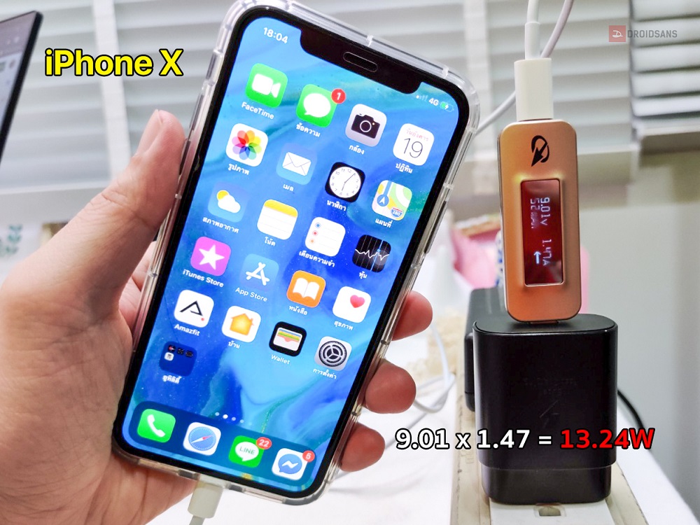 - iPhone X รองรับชาร์จไวสูงสุด 13.24W หรือตีกลมๆ ก็ประมาณ 15W