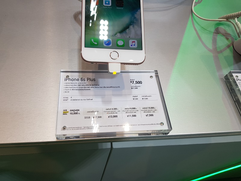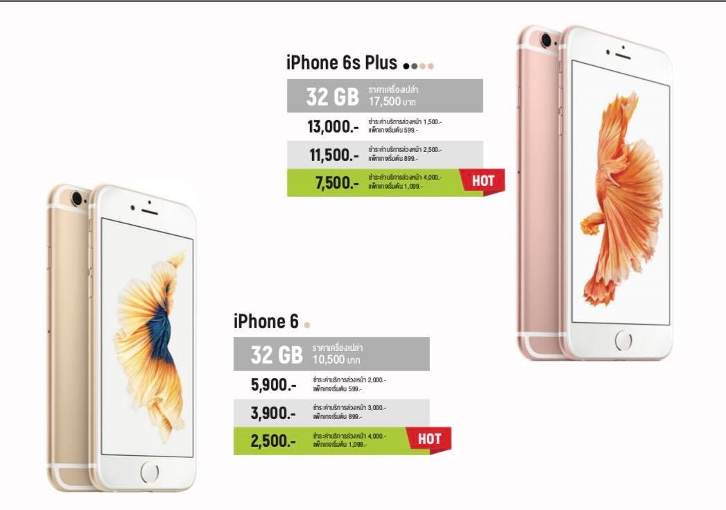 | iPhone 6s Plus (32GB) ราคาปกติ 17,500 บาท | 599 บาท ขึ้นไป | 1,500 บาท | 13,000 บาท |