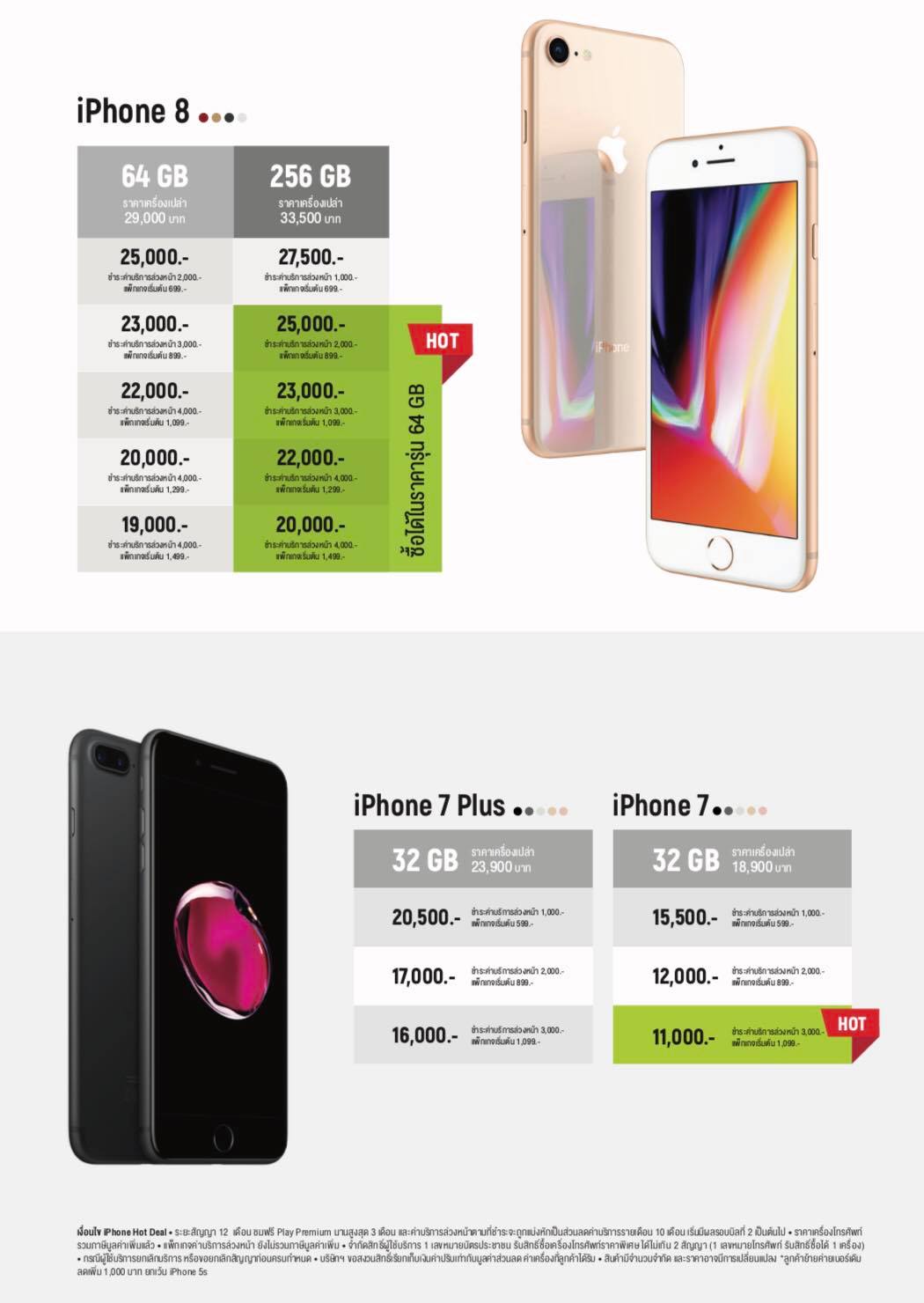 | iPhone 8 Plus (64GB) ราคาปกติ 33,000 บาท | 899 บาท ขึ้นไป | 3,000 บาท | 27,000 บาท |