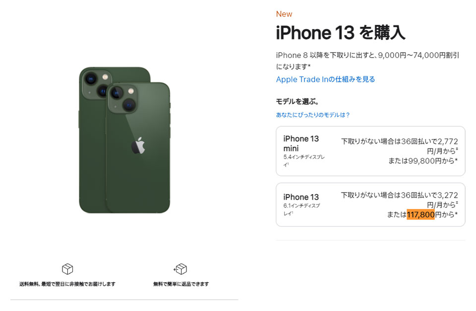 - iPhone 13 จากเดิมเริ่มต้น 98,800 เยน → ปรับเป็น 117,800 เยน