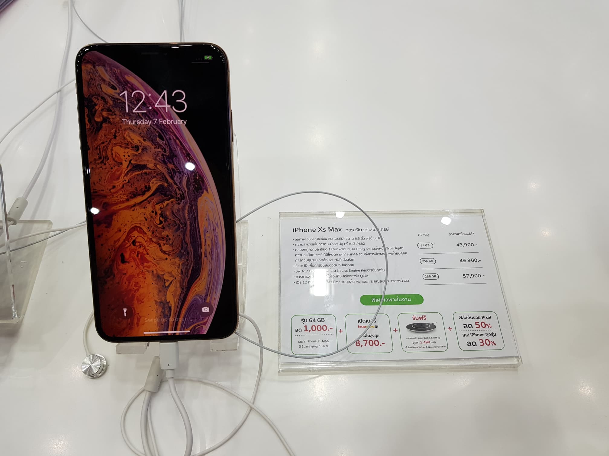 - iPhone XS Max ราคาพิเศษ 35,700 บาท เมื่อสมัครแพ็กเกจรายเดือน 1,299 บาทขึ้นไป และจ่ายล่วงหน้า 3,000 บาท