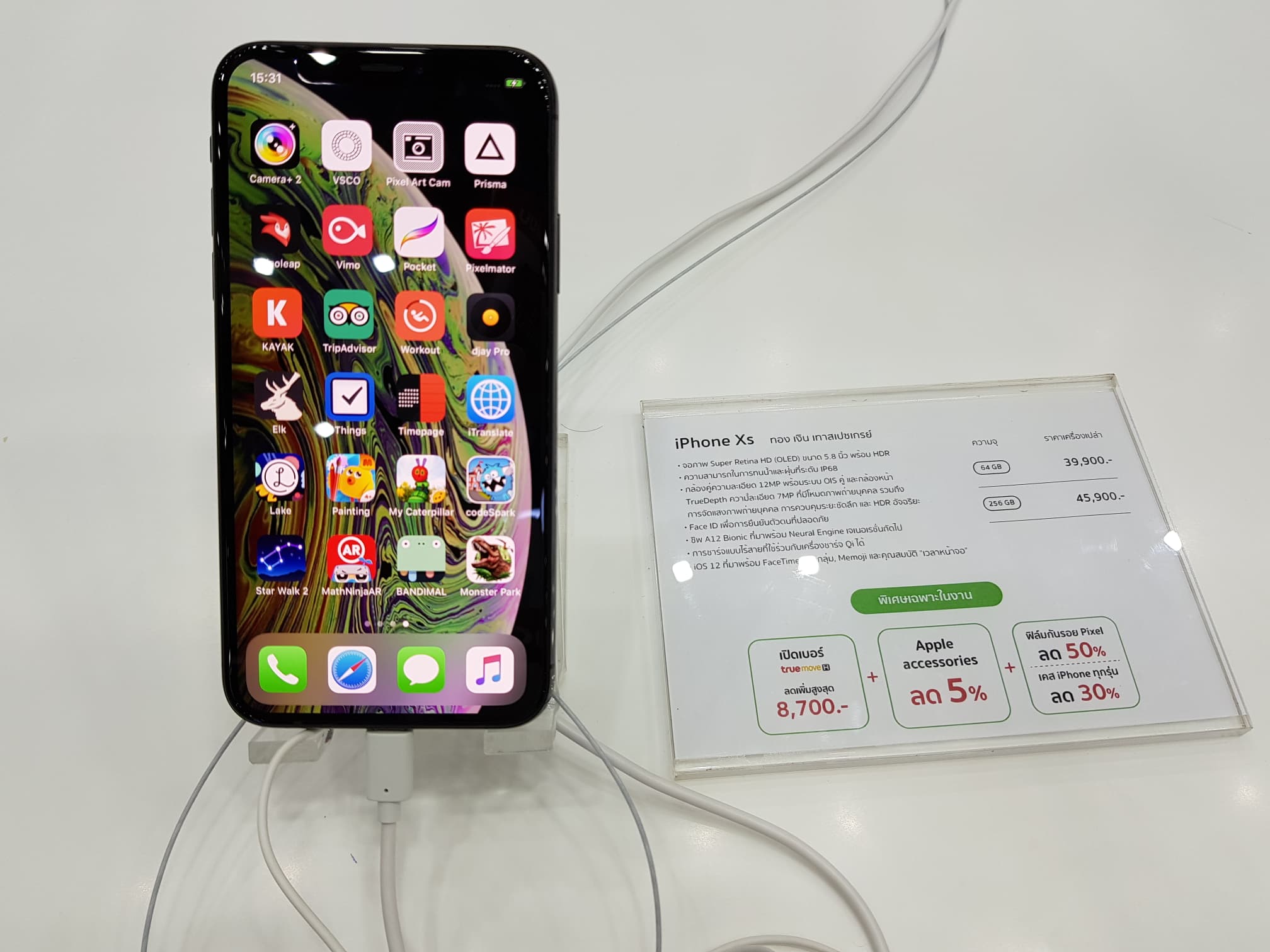 - iPhone XS ราคาพิเศษ 31,700 บาท เมื่อสมัครแพ็กเกจรายเดือน 1,299 บาทขึ้นไป และจ่ายล่วงหน้า 3,000 บาท