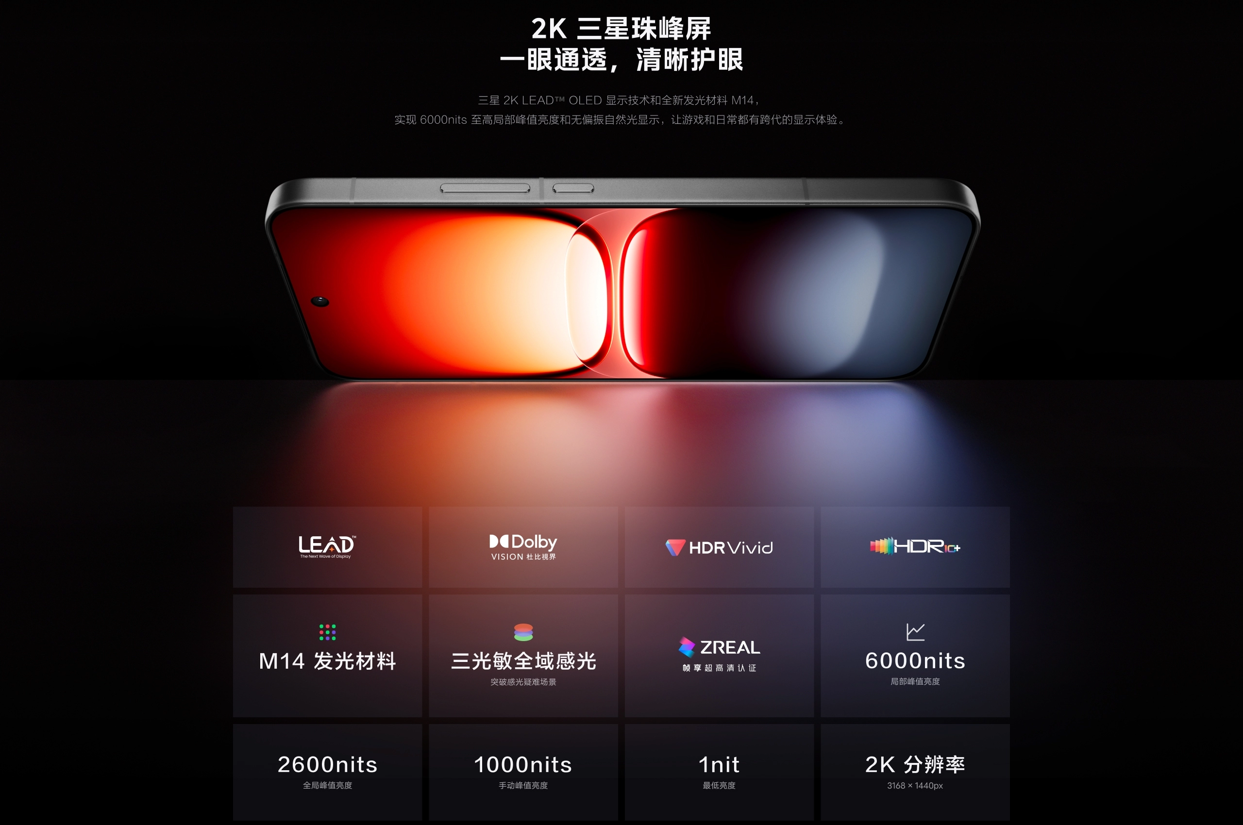 หน้าจอของ iQOO 15 เลือกใช้เป็นวัสดุ M14 ทำให้หน้าจอรองรับการแสดงผลความสว่างสูงสุด (HDR) ได้มากถึง 6,000 นิต ไปจนถึง Dolby Vision, HDR 10+ และ HDR Vivid โดยไม่ใช้พลังงานแบตเตอรี่เยอะ