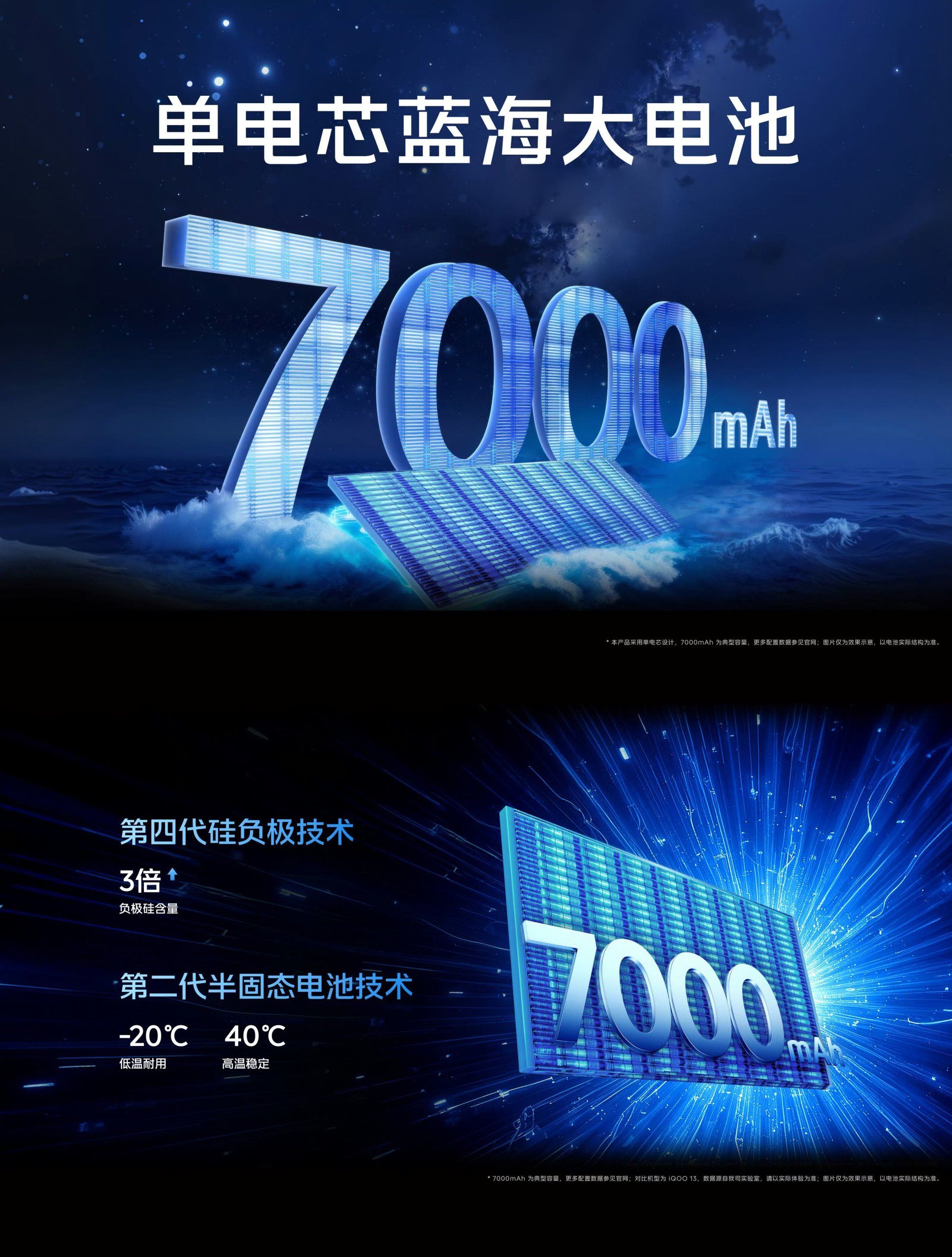 ความจุแบตเตอรี่ของ iQOO 15 อยู่ที่ 7,000mAh รองรับการใช้งานการชาร์จแบบกระแสตรง (Direct Power Supply) ช่วยลดความร้อนขณะชาร์จและเล่นเกมไปพร้อมกัน ทั้งยังรองรับชาร์จไวด้วยสายที่ความเร็ว 100W และชาร์จไวไร้สาย 40W
